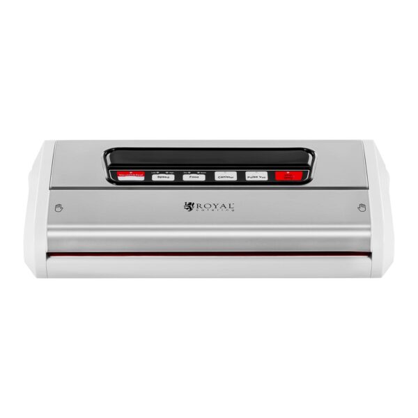 Carcasa aparatului de vidare este realizată din oțel inoxidabil cu strat ABS, ceea ce asigură respectarea celor mai înalte standarde de igienă. Aparatul dispune și de un compartiment practic pentru depozitarea rolelor de folie, care pot fi tăiate ulterior la dimensiunea dorită pentru pungi de vidare. Aparatul se controlează ușor prin intermediul unui panou digital LED intuitiv, care permite rezultate precise și repetitive.