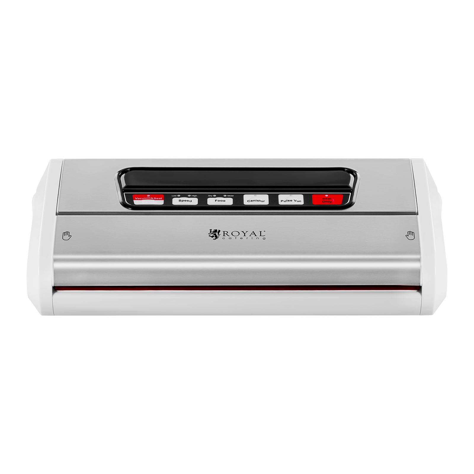 Aparatul de vidare RCVG-32E de la Royal Catering extrage complet aerul din interiorul pungii în care se află produsul. Este conceput pentru uz profesional în HoReCa. Mecanismul de închidere previne deteriorarea pungii în timpul vidării. Dimensiunea pungii din folie poate fi ajustată individual până la o lățime de 32 cm. După atingerea vidului, deschiderea pungii este sigilată în siguranță cu o sudură de 3 mm. Oxidarea este prevenită, evitând astfel dezvoltarea mucegaiului sau a bacteriilor. Alimentele dumneavoastră rămân proaspete mai mult timp și pot fi depozitate congelate chiar și câteva luni.