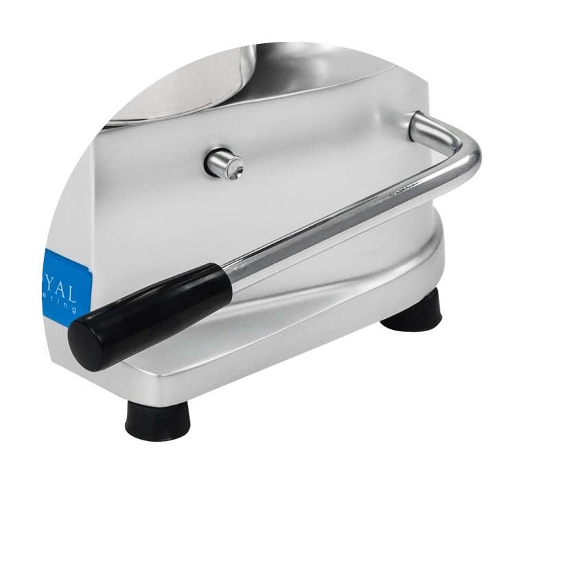 Aparatul de modelat hamburgeri RCHM-130 de la Royal Catering este un echipament indispensabil în orice bucătărie profesională. Permite prepararea rapidă a hamburgerilor din carne tocată, pește sau legume, facilitând procesul de producție pentru diverse tipuri de burgeri. Carcasa este realizată din aluminiu, iar cuva de lucru și suportul pentru folie sunt fabricate din oțel inoxidabil de înaltă calitate. Execuția precisă garantează că acest aparat profesional este fiabil și durabil. Toate componentele sunt ușor accesibile, ceea ce face curățarea rapidă și simplă. Cele patru picioare din cauciuc antiderapante asigură stabilitate și siguranță în utilizare. Operarea aparatului de modelat hamburgeri este foarte simplă și rapidă. După umplerea cuvei cu carnea dorită, aparatul formează burgeri compacți și rotunzi. Datorită matriței precise, la fiecare umplere obțineți burgeri perfecți și uniformi cu diametrul de 130 mm. Aparatul se acționează manual printr-un mecanism cu pârghie. Ridicarea pârghiei principale ridică presa din cuvă pentru a permite umplerea. Eliberarea pârghiei coboară presa pentru a modela carnea. Scoaterea ușoară a burgerilor este posibilă prin ridicarea din nou a pârghiei. O altă pârghie laterală permite coborârea plăcii de formare la baza cuvei. Pentru formarea burgerilor se folosesc discuri de hârtie cu diametrul de 130 mm. Datorită unui dozator special, discurile sunt depozitate și poziționate pentru a asigura un flux rapid și eficient al aparatului. Aceste discuri previn contactul direct al cărnii cu mâinile, asigurând un nivel ridicat de igienă. Pachetul include și discuri mici de hârtie. Suntem convinși de calitatea superioară a echipamentelor noastre, de aceea oferim garanție extinsă pentru fiecare produs.