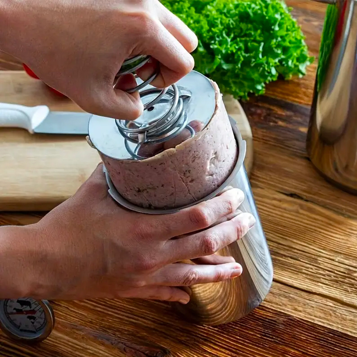 Datorită termometrului practic, aveți control total asupra procesului de gătire, asigurând temperatura ideală și textura perfectă a cărnii. Mecanismul cu arc presează uniform conținutul, astfel încât șunca devine fermă și capătă o consistență delicioasă.