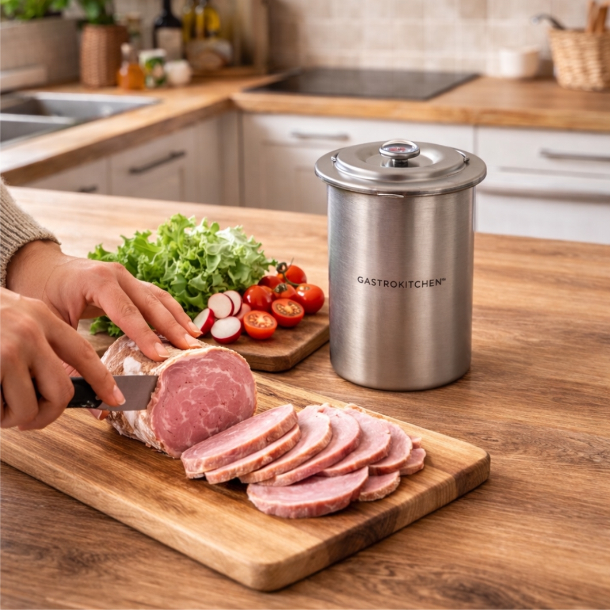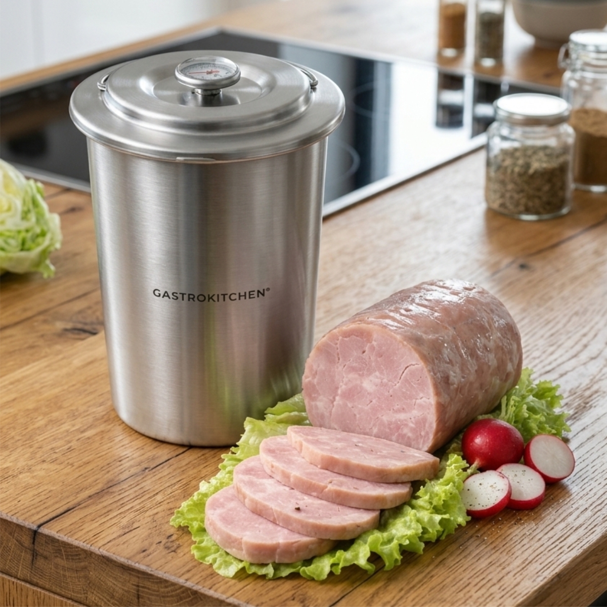 Aparatul pentru șuncă Gastrokitchen este ideal pentru prepararea șuncii de casă, ruladelor și altor specialități din carne. Poate fi folosit atât acasă, cât și în bucătării profesionale, fiind apreciat pentru prepararea mâncărurilor sănătoase și gustoase pentru întreaga familie.