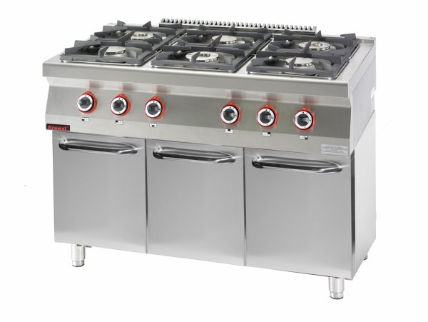 Aragaz pe gaz cu 6 arzătoare și dulap închis | 700.KG-6.S.D de la KROMET este destinat utilizării în bucătării profesionale HoReCa.