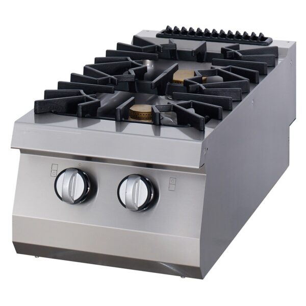 Plita profesională funcționează pe gaz și este dotată cu 2 arzătoare. Această plită este concepută pentru utilizare intensivă, iar designul ergonomic face munca mai confortabilă. Carcasa este realizată integral din oțel inoxidabil, ceea ce facilitează curățarea. Suporturile pentru tigăi sunt din fontă, iar arzătoarele cromate oferă o putere mare și ardere rapidă. Datorită adâncimii de 900 mm, această plită este ideală pentru tigăi mari. Există suficient spațiu pentru ca toate arzătoarele să fie folosite cu tigăi voluminoase.