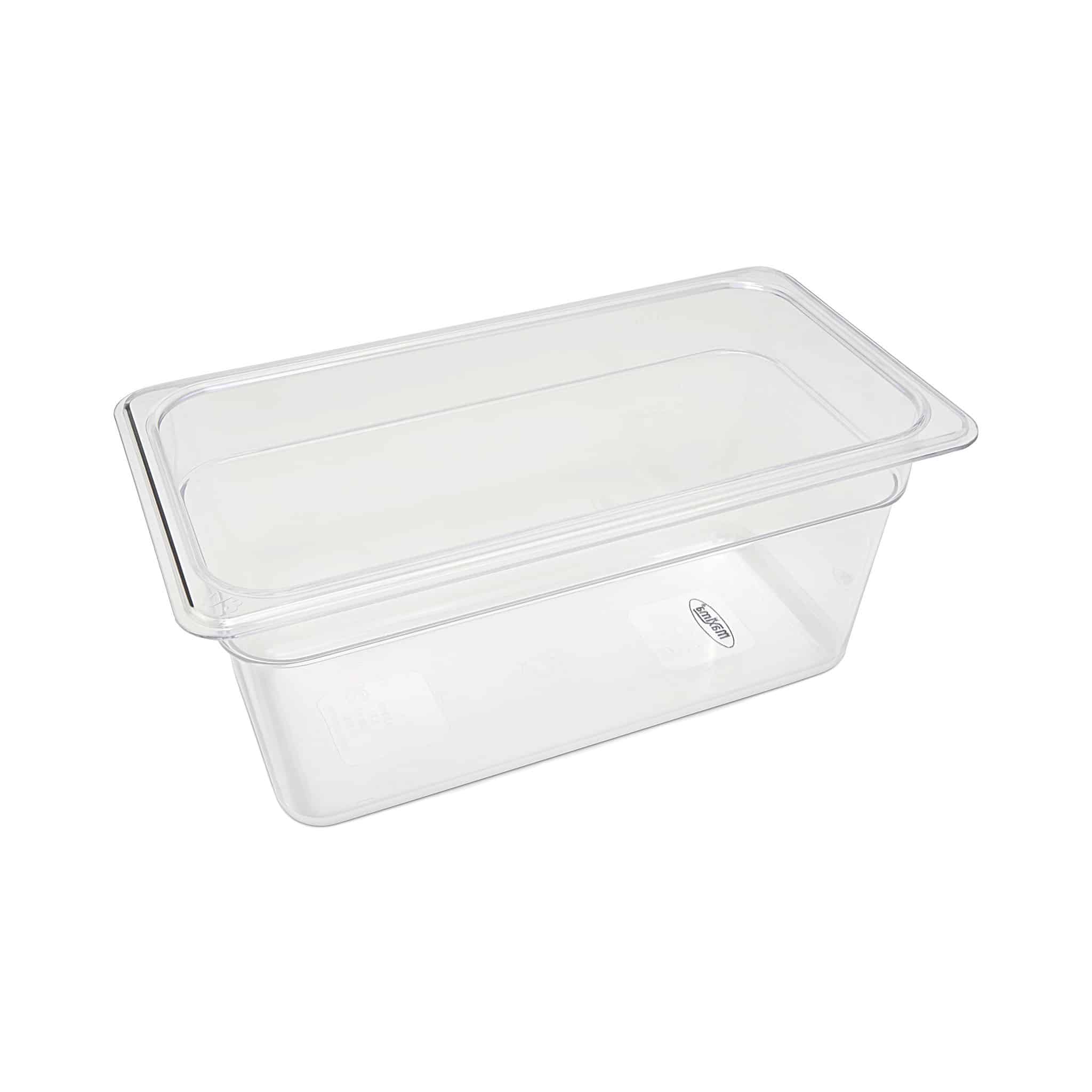 Aceste bacsuri gastronorm transparente și robuste din policarbonat pot fi echipate cu capac standard sau capac cu decupaj pentru lingură. Băcile GN din policarbonat sunt practic indestructibile și rămân reci la atingere. Datorită transparenței, conținutul este vizibil imediat. Băcile ușoare din policarbonat sunt stivuibile și potrivite pentru mașina de spălat vase.