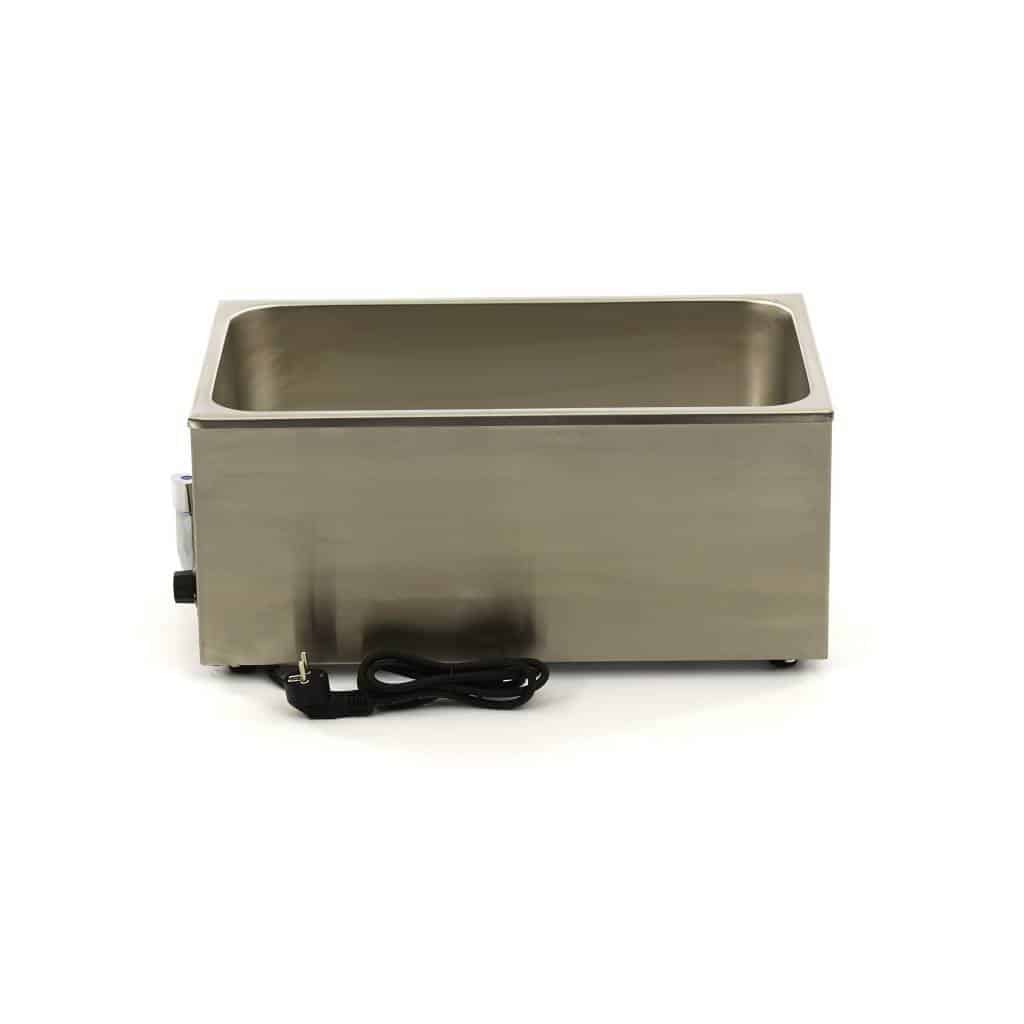 Bain Marie Maxima cu robinet este fabricat integral din inox. Are un finisaj de calitate și un design ergonomic, ideal pentru utilizare profesională. În plus, este dotat cu robinet pentru golirea apei. Acest Bain Marie Maxima cu robinet are patru picioare din cauciuc pentru stabilitate maximă în bucătăria dumneavoastră, fără riscul de alunecare sau răsturnare. Se curăță foarte ușor, astfel încât să arate mereu ca nou. Un avantaj important: Bain Marie-ul are indicatori de temperatură.