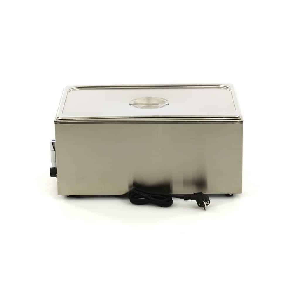 Bain Marie Maxima cu robinet este fabricat integral din oțel inoxidabil. Are un finisaj de calitate și un design ergonomic, ideal pentru utilizare profesională. În plus, este dotat cu robinet pentru scurgerea apei. Acest Bain Marie Maxima cu robinet are patru picioare din cauciuc pentru stabilitate maximă în bucătăria dumneavoastră, fără riscul de alunecare sau răsturnare. Se curăță foarte ușor, astfel încât să arate mereu ca nou. De reținut: Bain Marie-ul are indicatori de temperatură.