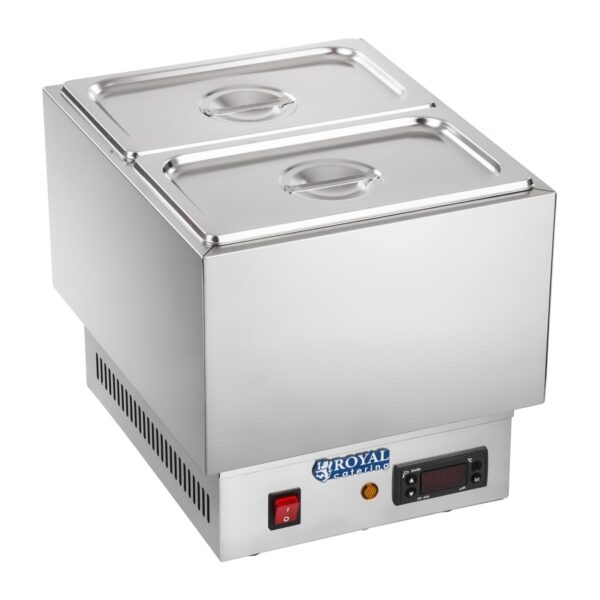 Bain-marie pentru ciocolată – 2 x 1/4 GN | RCCM-250-2GN este un echipament conceput pentru topirea ciocolatei. Ciocolata lichidă permite prepararea de praline, glazuri pentru torturi, înghețată și alte deserturi. Aparatul este ideal pentru utilizare profesională în gastronomie.