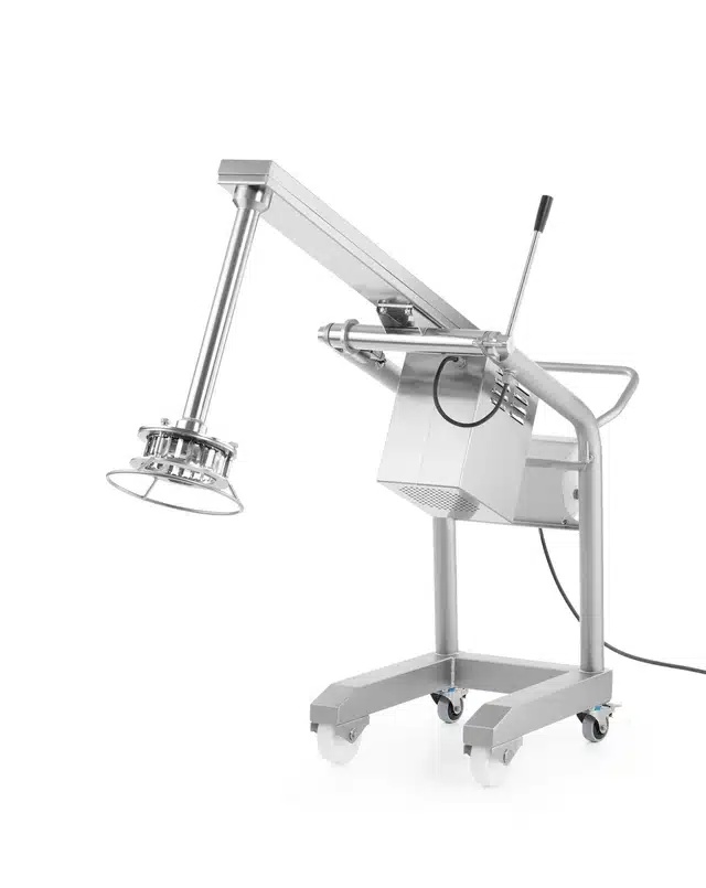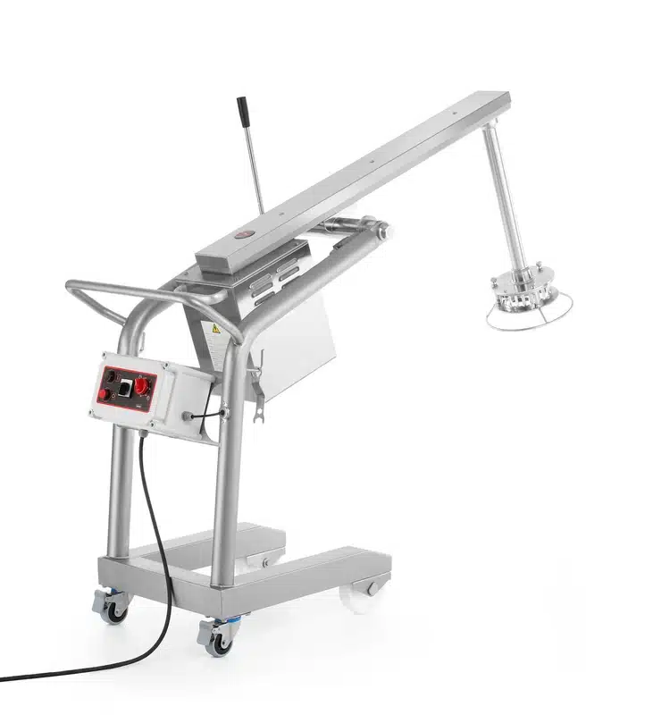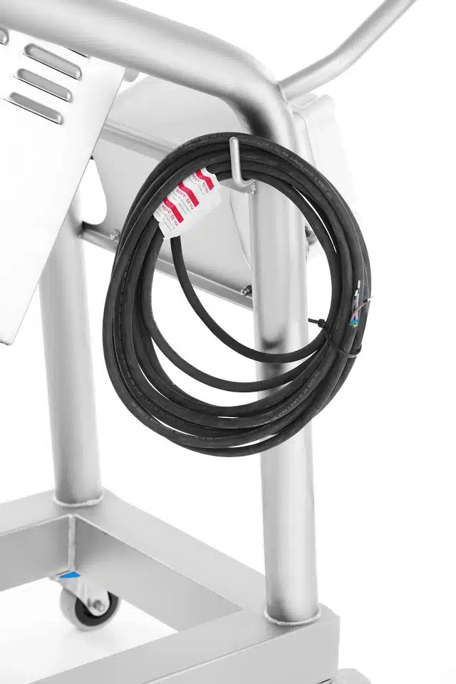 - Cablurile electrice sunt ascunse în cadrul căruciorului, lăsând zona de lucru liberă pentru mișcarea brațului de mixare