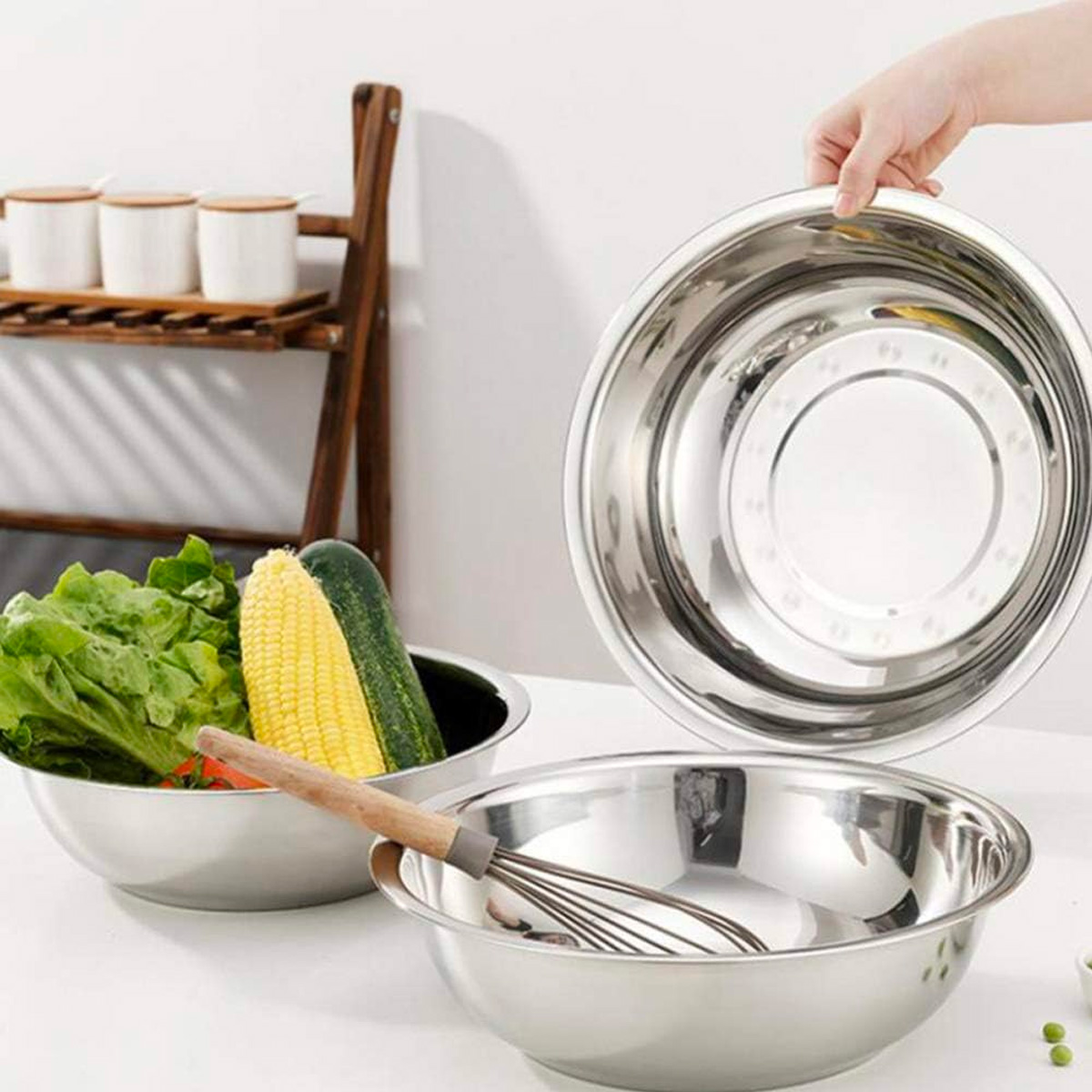 Bol inoxidabil de mare capacitate, cu volum de 9 litri și diametru de 42 cm, ideal pentru prepararea unor cantități mari de alimente în restaurante, cantine sau pentru catering. Fabricat din oțel inoxidabil 410 de calitate, este extrem de rezistent și potrivit pentru utilizare profesională frecventă. Perfect pentru amestecarea ingredientelor, marinarea cărnii, prepararea aluatului sau a salatelor în cantități mari. Designul simplu permite curățarea ușoară și asigură o durată lungă de viață.