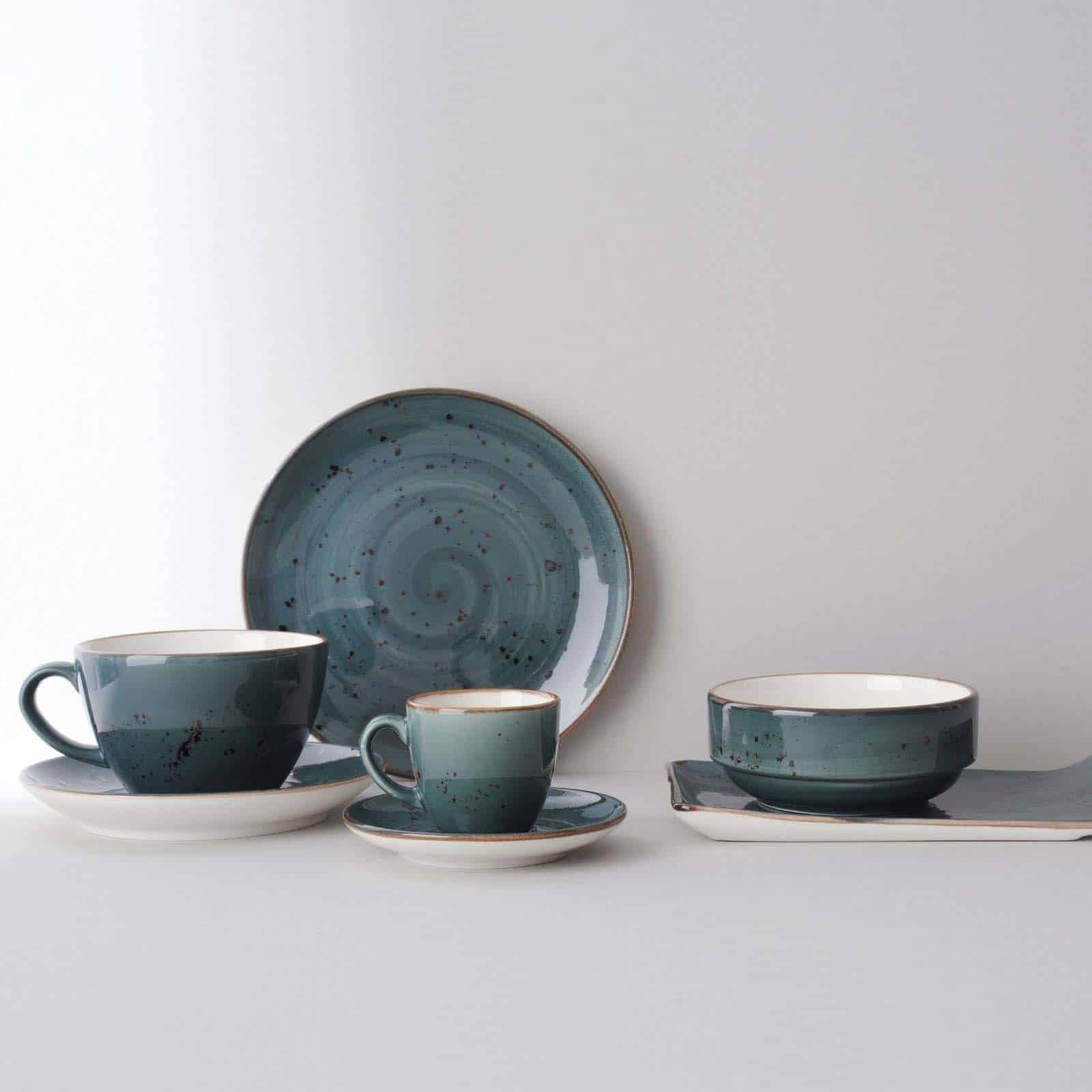 Colecție bogată de porțelan decorat manual, disponibilă în patru culori vibrante. Combinați elemente portocalii, albastre, bleumarin și gri pentru un aspect unic și surprinzător al mesei, iar preparatele vor arăta la fel de bine pe cât sunt de gustoase. Vesela este durabilă și rezistentă, concepută special pentru a face față utilizării intense în bucătăriile profesionale.