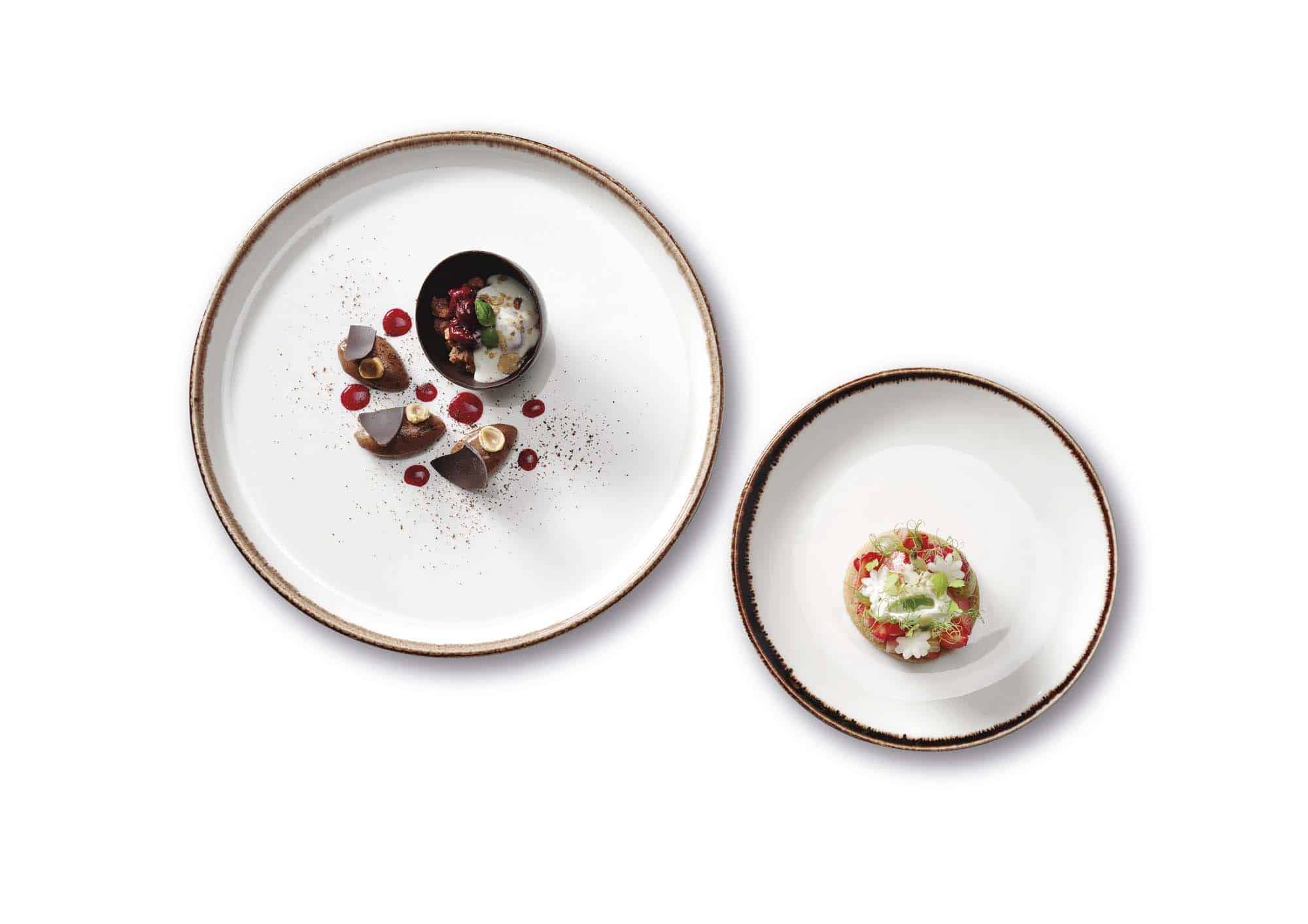 Colecție bogată de porțelan decorat manual, disponibilă în patru culori vibrante. Combinați elemente portocalii, albastre, bleumarin și gri pentru un aspect unic și surprinzător al mesei, iar preparatele vor arăta la fel de bine pe cât sunt de gustoase. Vesela este durabilă și rezistentă, proiectată special pentru a face față utilizării intense în bucătăriile profesionale.