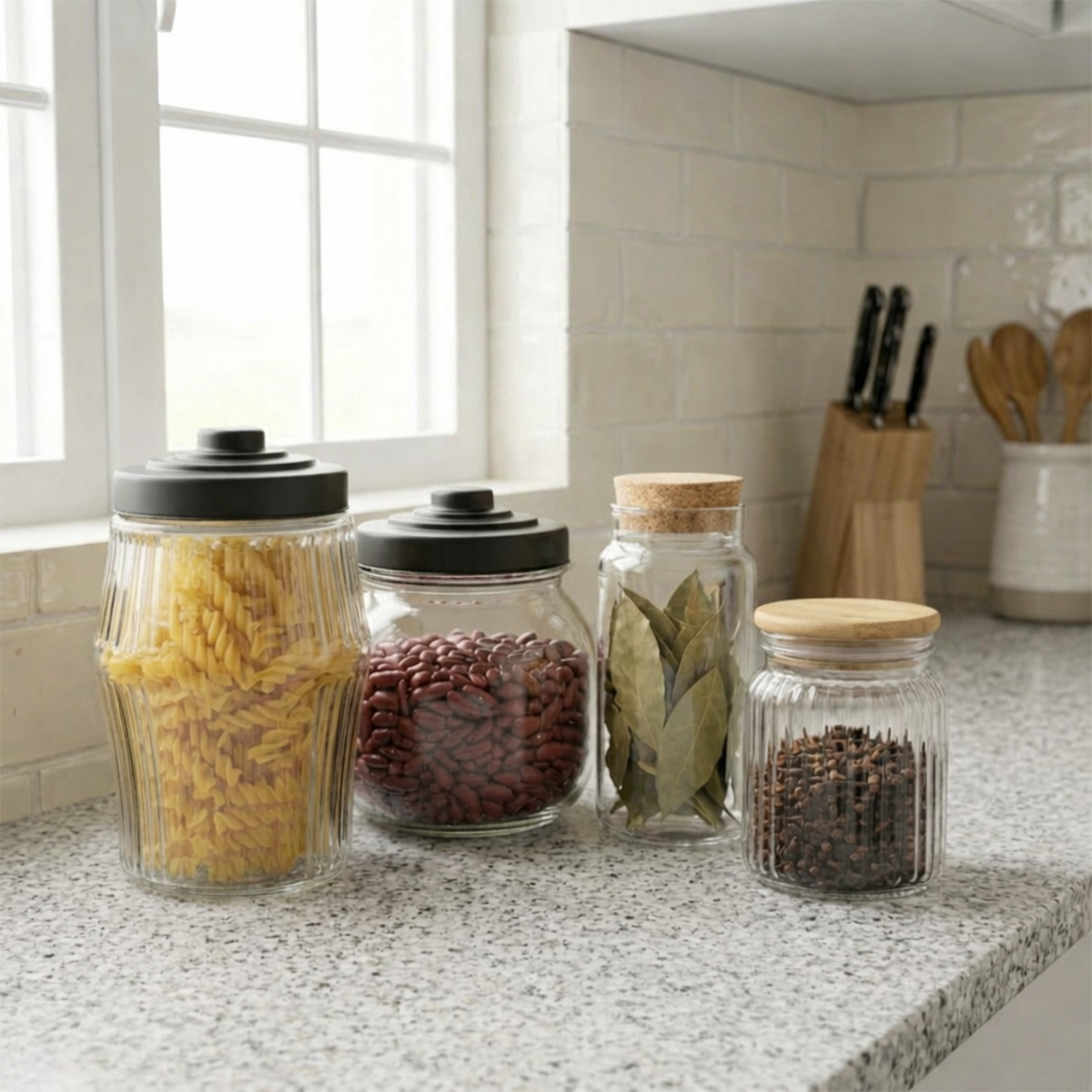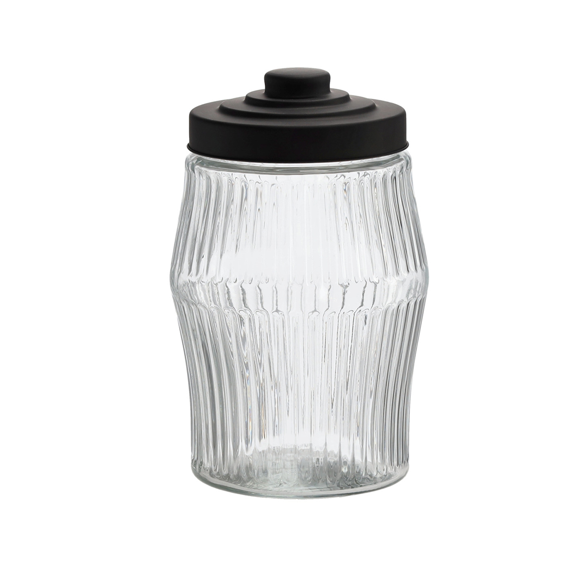 Borcanul din sticlă cu nervuri și capac – 2,8 L este un accesoriu elegant și practic pentru orice bucătărie sau cămară. Este perfect pentru depozitarea pastelor, orezului, condimentelor, leguminoaselor, mierii și a altor ingrediente. Capacul metalic negru completează aspectul borcanului și protejează conținutul în timpul depozitării. Datorită designului cu nervuri, are un aspect decorativ și se potrivește ușor atât în interioare moderne, cât și clasice.