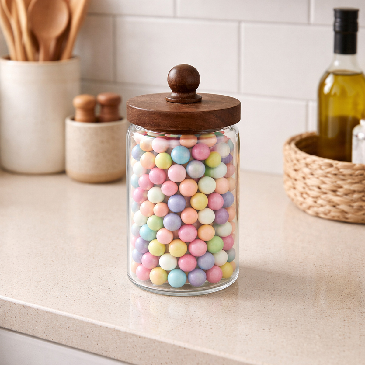 Borcanul din sticlă pentru alimente cu capac – 1 L este o soluție practică și elegantă pentru depozitarea mierii, gemurilor, condimentelor și a altor ingrediente. Datorită designului transparent, conținutul este mereu vizibil, iar capacul din lemn oferă un aspect rafinat borcanului. Pachetul include și o linguriță pentru servire ușoară.