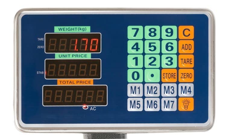 - Programare prețuri – cântarul are memorie pentru programarea prețurilor. Puteți salva până la 7 prețuri în memorie, ceea ce permite utilizarea rapidă fără a introduce mereu prețurile manual.