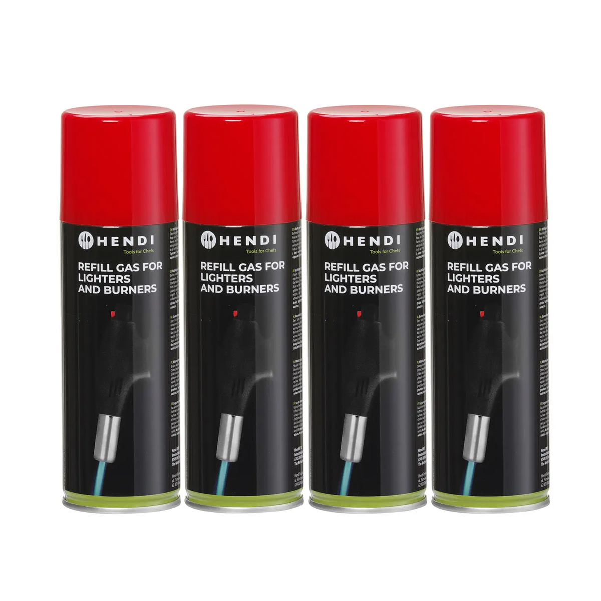 Cartușul de gaz pentru arzător – set 4 bucăți | Hendi 199046 este compatibil cu arzătoarele pe gaz cu cod 198223 și 198209.