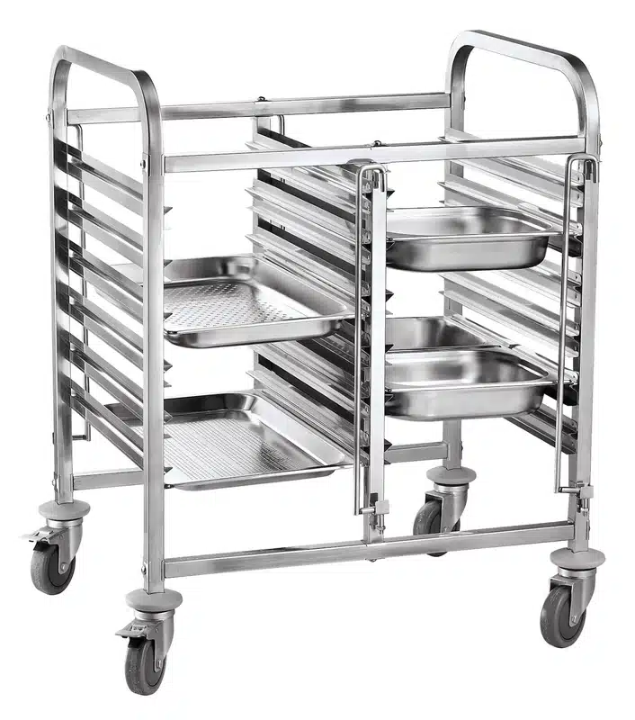 Caruciorul de servire – 12×GN 1/1 – dublu | Hendi 810569 este o soluție practică, recomandată în special pentru utilizare în bucătării profesionale și unități de catering de mari dimensiuni.
