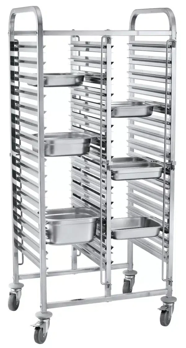 Caruciorul de servire – 30×GN 1/1 – dublu | Hendi 810576 este o soluție practică recomandată în special pentru utilizarea în bucătării profesionale și unități de catering de mari dimensiuni.