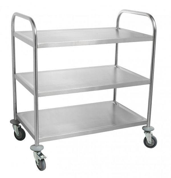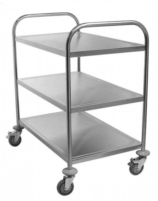 Caruciorul de servire este fabricat din oțel inoxidabil de înaltă calitate. Fundul rafturilor este acoperit cu un material care atenuează zgomotul, crescând astfel confortul la lucru. Deplasarea căruciorului este asigurată de 4 roți pivotante cu tampoane din cauciuc, inclusiv două roți cu frâne. Sarcina maximă pe fiecare raft este de 50 kg. Dimensiuni raft: 500x830mm.