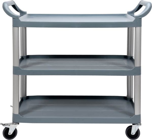 Carucior profesional de servire din plastic cu 3 rafturi YATO, cu dimensiunile 1040x510x980mm, este ideal pentru unități de alimentație mari și medii, precum hoteluri, restaurante sau firme de catering.