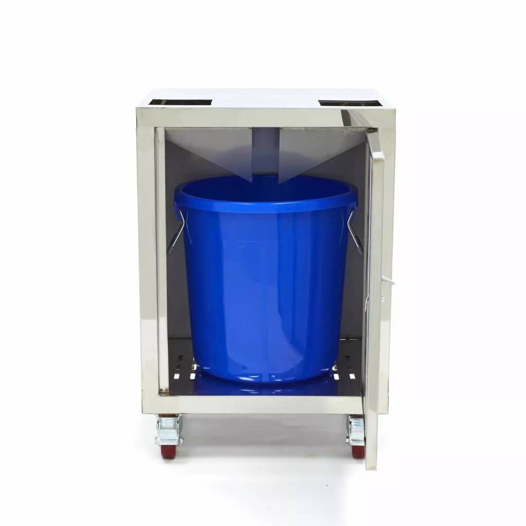 - Baza este echipată și cu tavă de colectare și accesorii pentru ghidarea deșeurilor către coș.