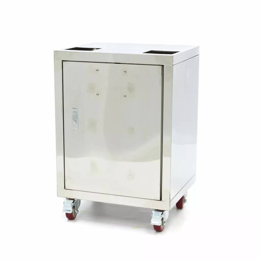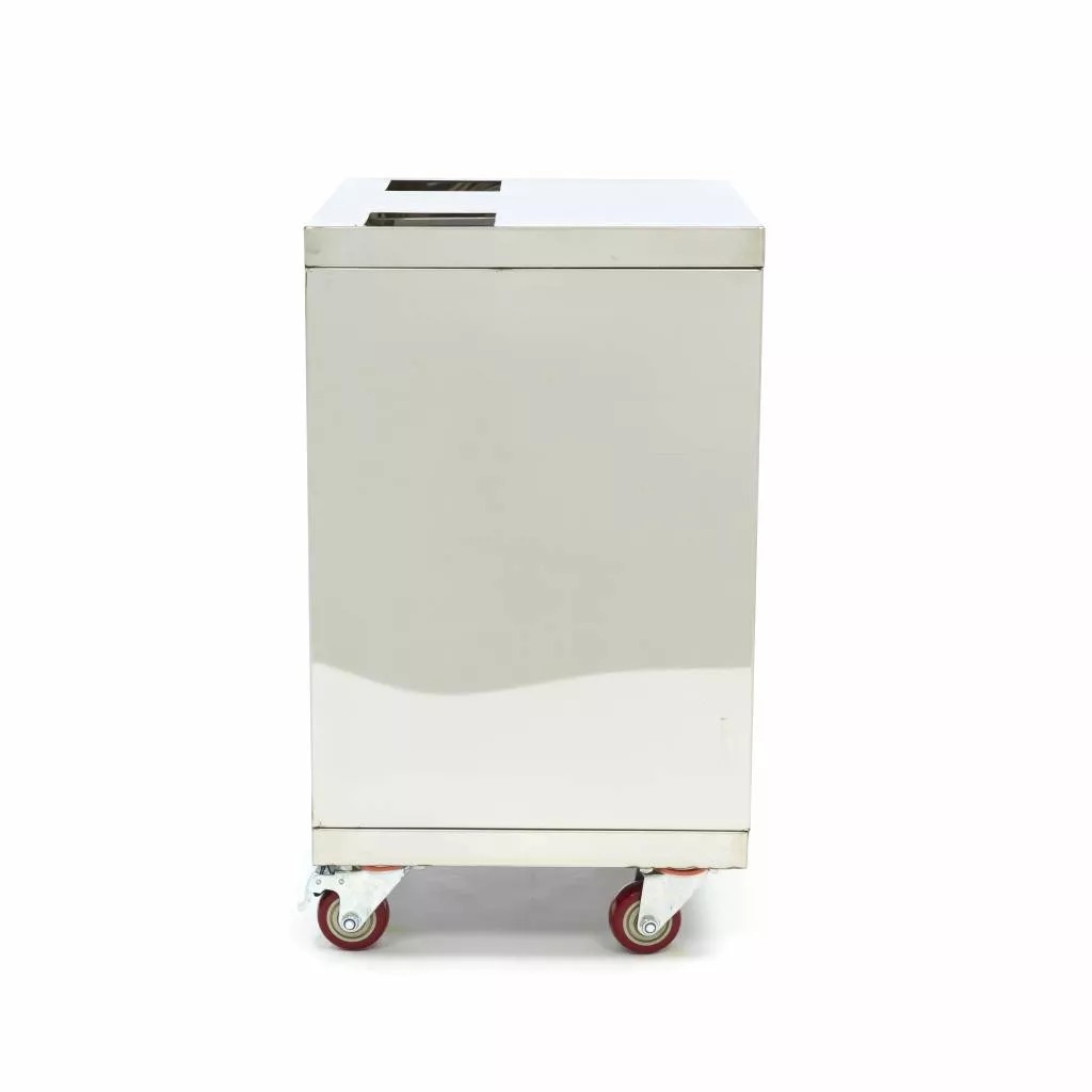 Acest cărucior este livrat cu o bază pe roți, realizată integral din oțel inoxidabil, ideală pentru utilizare împreună cu storcătorul automat MAJ-26X sau storcătorul de portocale MAJ-50X de la Maxima. Aceste prese pentru suc de portocale pot fi destul de grele și dificil de mutat în bucătărie pentru curățare. Cu ajutorul acestui cărucior practic, poți muta storcătorul oriunde ai nevoie, fără efort.