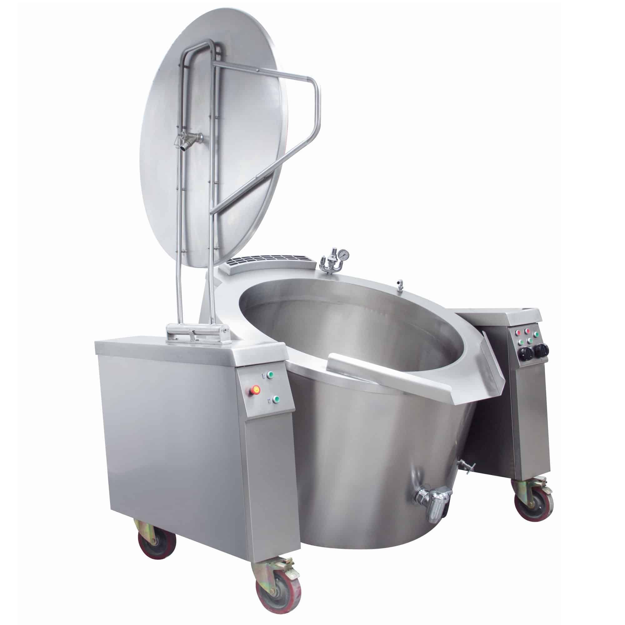 Cazanul de gătit cu o capacitate de 150 l este ideal pentru fierbere, coacere sau poșare. Vasul basculant are o siguranță care împiedică deschiderea capacului atunci când este înclinat. Vasul poate fi înclinat ușor cu ajutorul unui panou de control simplu. Acest cazan de gătit are pereți dubli care pot fi umpluți cu apă; este un sistem de încălzire indirectă ce asigură o distribuție uniformă a căldurii pe fundul și pereții laterali ai cazanului. Fiind fabricat complet din inox, curățarea este rapidă și ușoară.