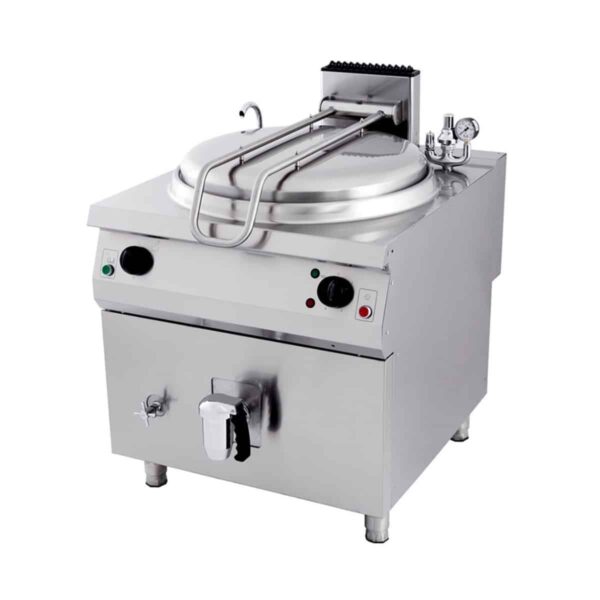 Cazanul de gătit Premium cu volum de 100 l este ideal pentru fierbere, coacere sau poșare. Vasul de gătit are un capac dublu, care asigură o izolație superioară. Capacul se deschide și se închide ușor datorită mecanismului rabatabil și echilibrat. Acest cazan de gătit are pereți dubli ce pot fi umpluți cu apă; este un sistem de încălzire indirectă ce asigură distribuția uniformă a căldurii pe fundul și pereții laterali ai vasului. Deoarece cazanul este fabricat integral din inox, curățarea este foarte ușoară.