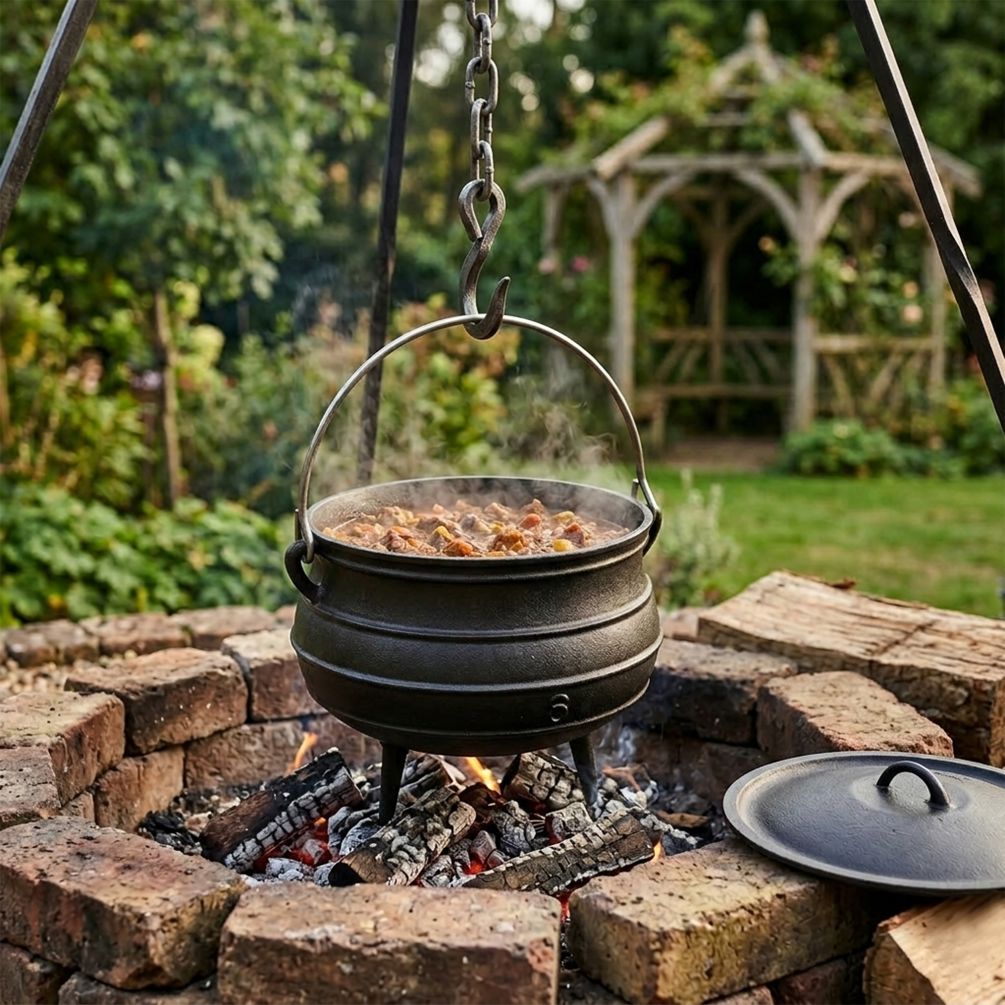 Ceaun masiv din fontă cu o capacitate de 13,5 l, perfect pentru prepararea supelor și a mâncărurilor gătite lent. Datorită construcției robuste din fontă, acumulează excelent căldura, o distribuie uniform și ajută la menținerea temperaturii stabile în timpul gătitului. Cu ajutorul mânerului, ceaunul poate fi suspendat deasupra focului deschis pentru gătit tradițional.