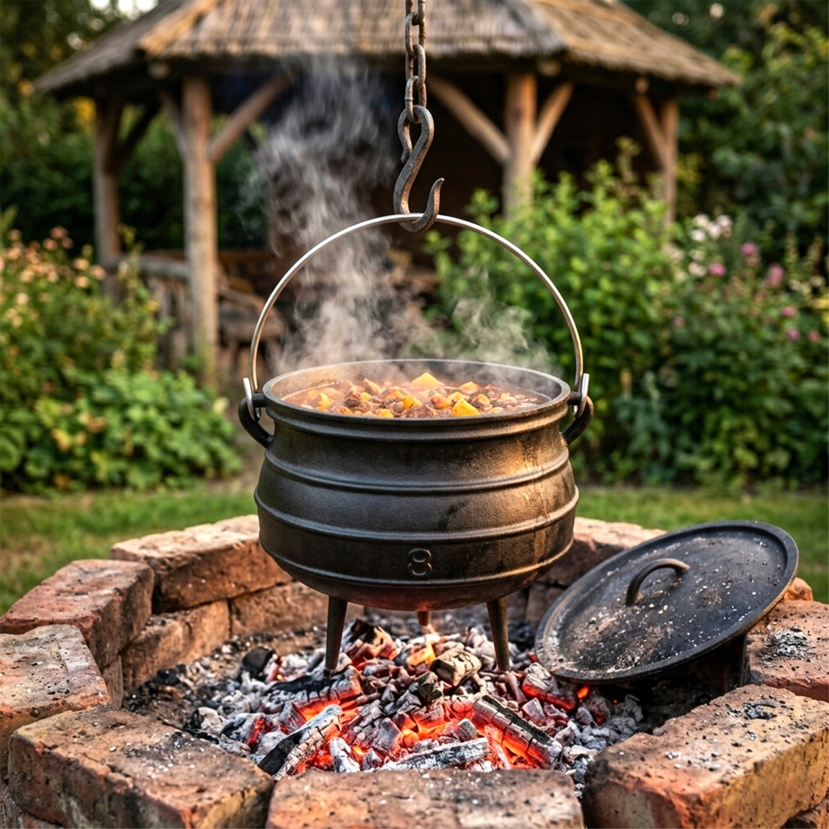 Ceaun masiv din fontă cu volum de 18,5 l și diametru de 35 cm, ideal pentru prepararea supelor și a mâncărurilor gătite lent. Datorită construcției robuste din fontă, acumulează excelent căldura, o distribuie uniform și ajută la menținerea temperaturii stabile în timpul gătitului. Cu ajutorul mânerului, ceaunul poate fi suspendat deasupra focului deschis pentru gătit tradițional.