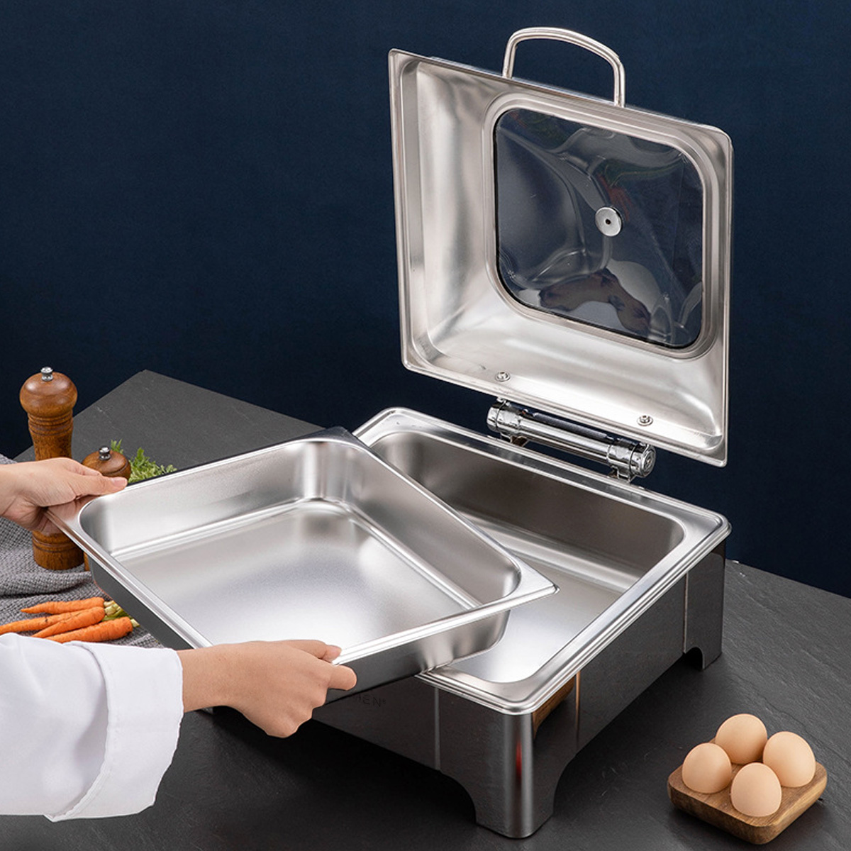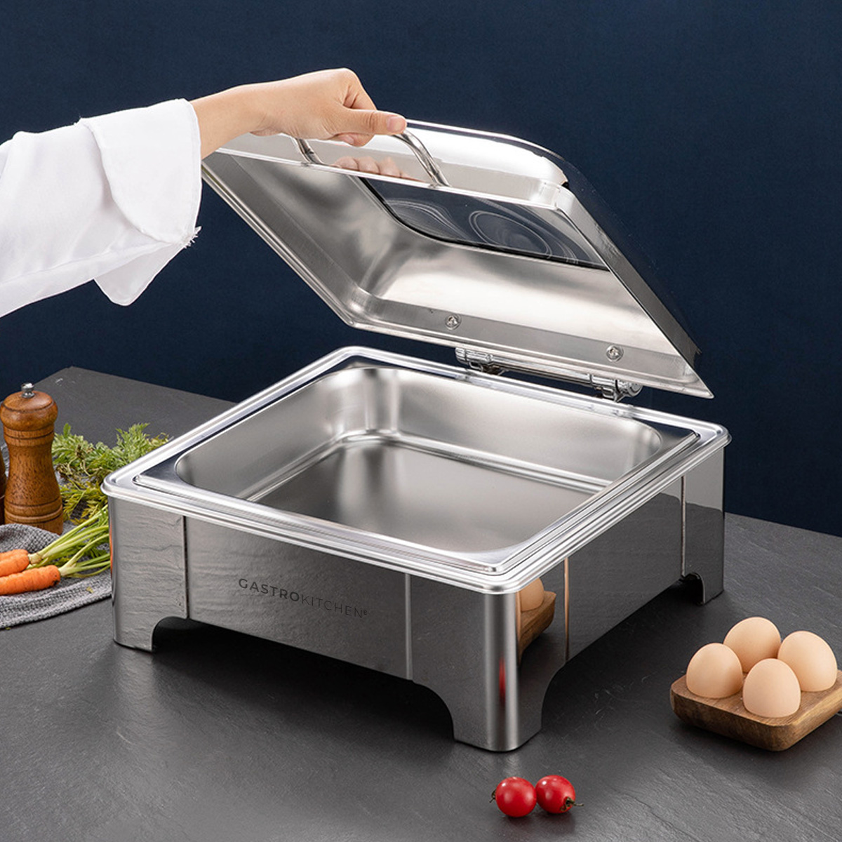 Chafing electric elegant și practic, cu o capacitate de 6 litri, ideal pentru catering, hoteluri, bufete sau evenimente corporate.