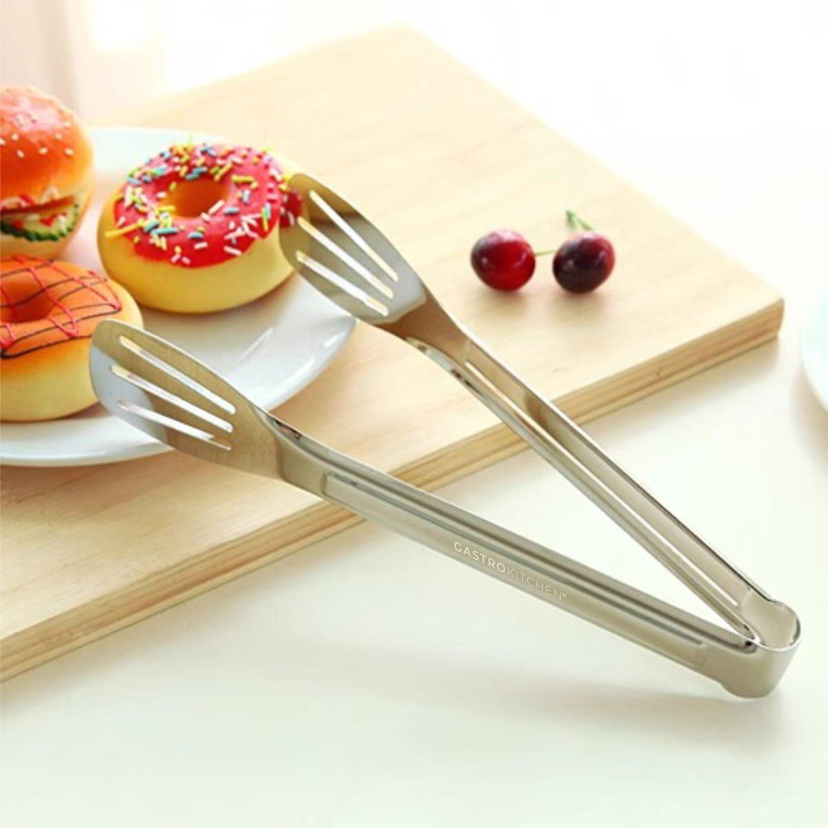 Cleștii sunt potriviți pentru utilizare zilnică în bucătării profesionale sau acasă – au prindere confortabilă, pot fi folosiți cu o singură mână și ajută la menținerea igienei la servire. Oțelul inoxidabil rezistent asigură durabilitate și întreținere ușoară.