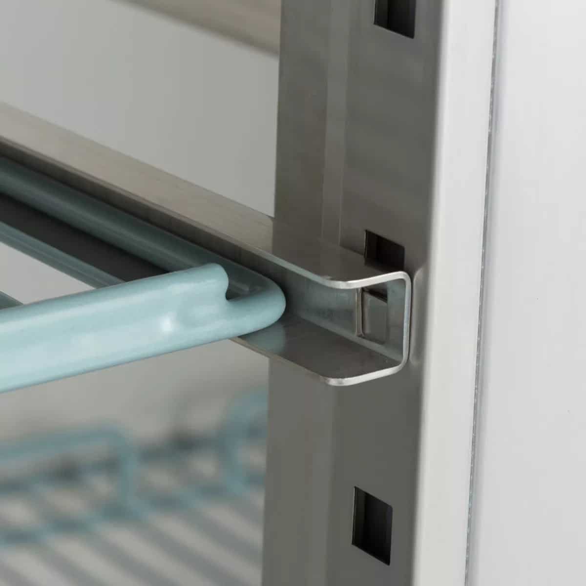 Pe cele 6 rafturi reglabile pe înălțime încap tăvi GN 2/1. Congelatorul este echipat cu yală și se livrează cu două chei. În interior găsiți iluminare LED integrată, astfel încât toate produsele să fie vizibile în orice moment.