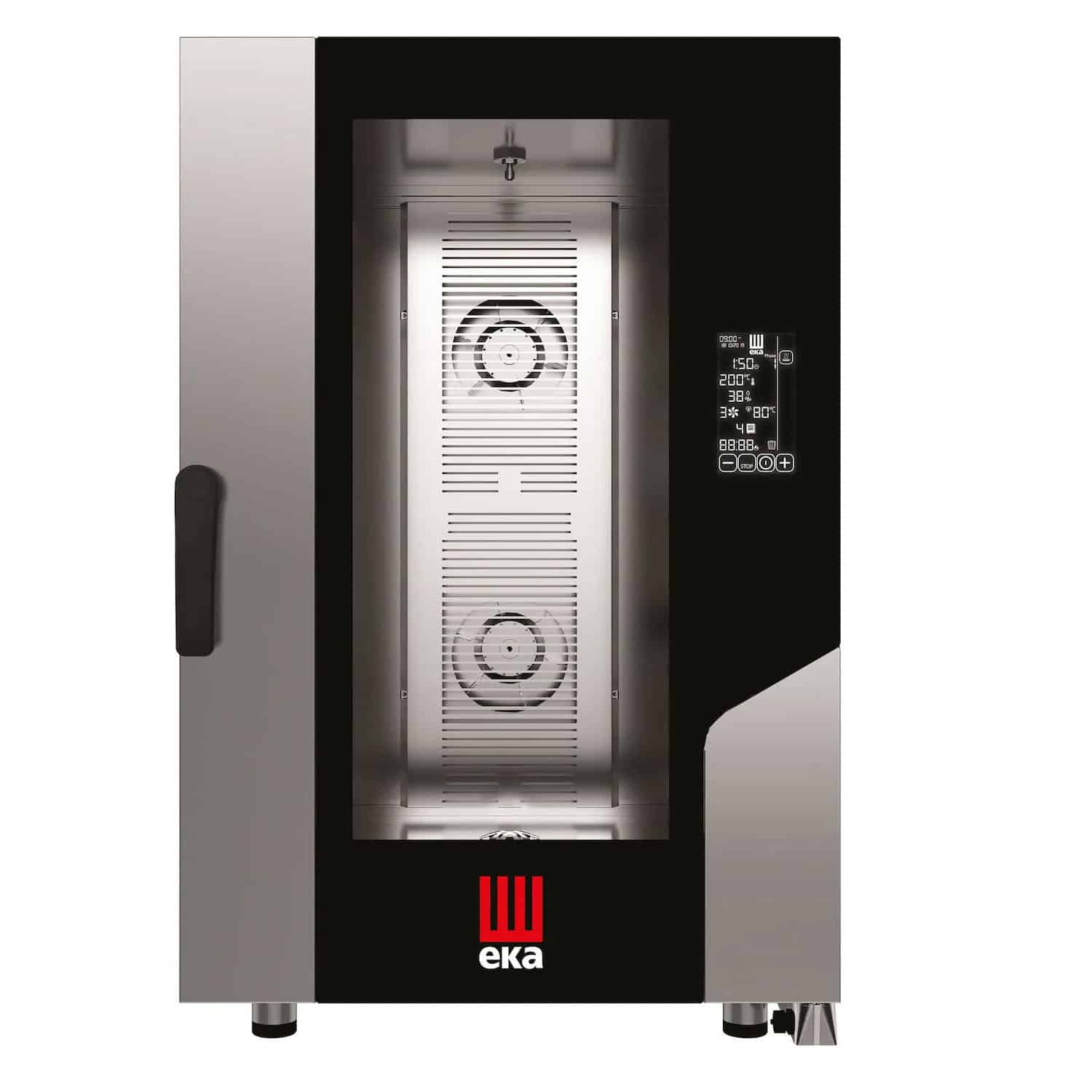 - Trei viteze ale ventilatorului între 1500 și 2800 rpm – control în 3 trepte pentru adaptarea fluxului de aer necesar gătitului și menținerea temperaturii uniforme în toată camera. Viteze ventilator: normal, semistatic, ½ putere