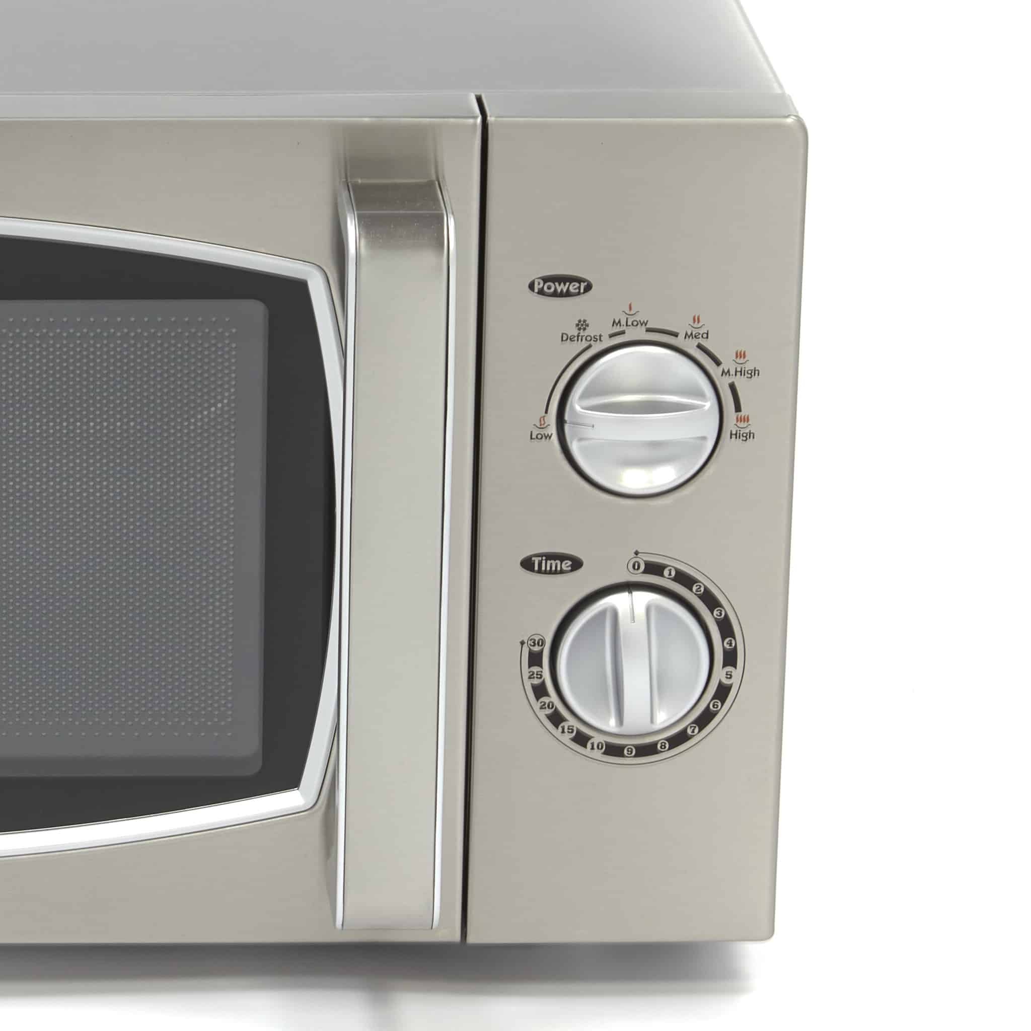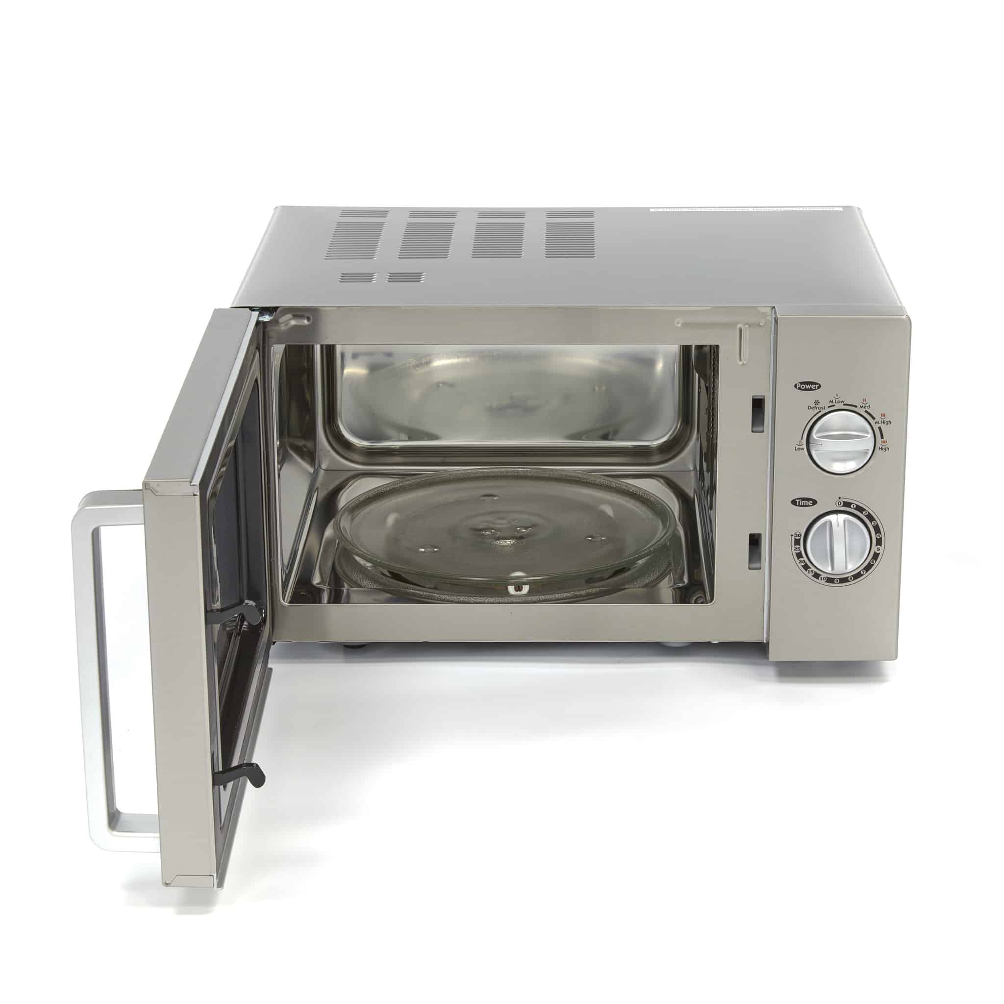 Cuptorul cu microunde – 25 L – 900 W | Maxima 09367000 este extrem de versatil datorită puterii ridicate și programelor variate. Carcasa și camera interioară sunt realizate din inox, cu o placă de sticlă la bază. Aparatul este ușor de folosit și setat datorită butoanelor cromate.