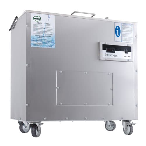 Curățătorul decarbonizator Frucosol MC1000 este o mașină de degresat; un sistem nou de curățare care elimină munca grea de îndepărtare a grăsimii și murdăriei de pe ustensilele de bucătărie și panificație (filtre, tăvi, tigăi, oale etc.).