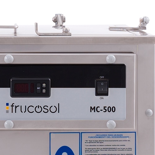 Modelul MC500 de la Frucosol, brand spaniol, curăță orice tip de ustensilă, prelungește durata de viață a echipamentelor și asigură igienizare și dezinfectare superioară, eliminând toate bacteriile. Trebuie doar să scufundați ustensilele în funcție de gradul de murdărie și să le clătiți cu apă.