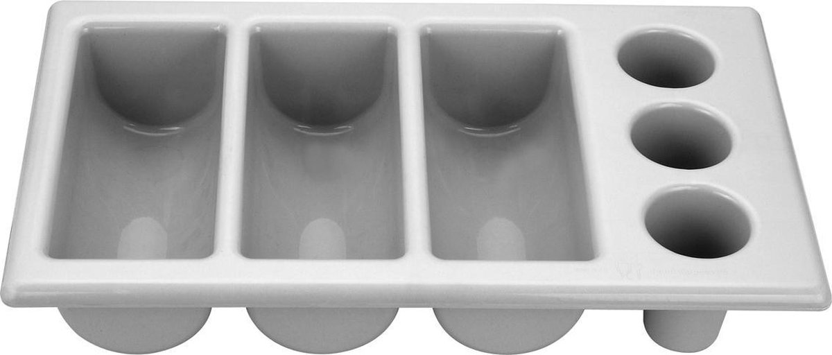 Cutia pentru tacâmuri – 530x325x105 mm – gri | Hendi 552353, realizată din polipropilenă, dispune de trei compartimente potrivite pentru lingurițe de cafea, lingurițe de ceai, furculițe de desert și trei compartimente pentru tacâmuri. Cutia pentru tacâmuri este un accesoriu indispensabil pentru servirea micului dejun, prânzului sau cinei oaspeților dumneavoastră. Această cutie pentru tacâmuri este ideală pentru bufet, hotel, restaurant și alte locații HoReCa.