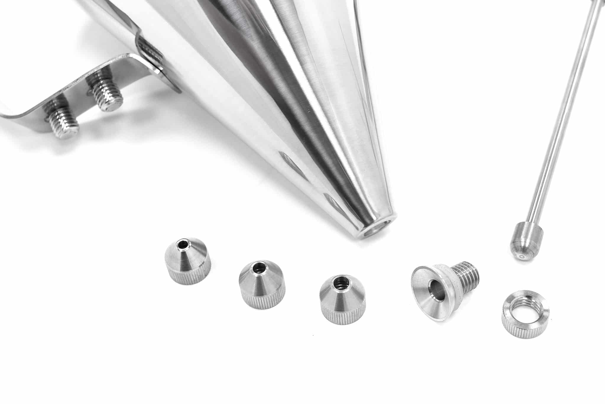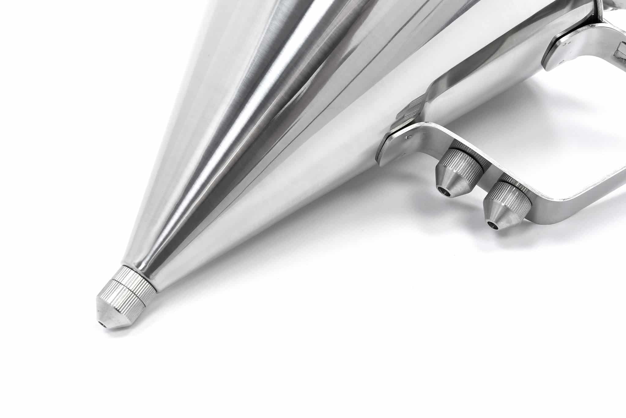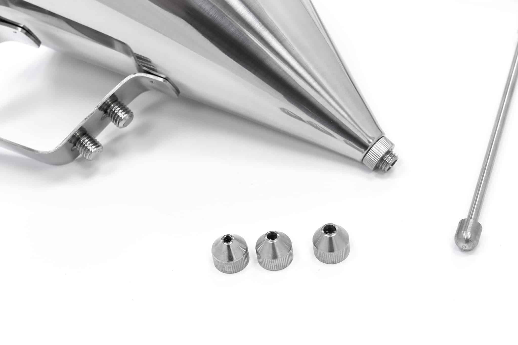 Cu dozatorul de aluat din inox Deluxe, turnați ușor aluatul în diverse forme de copt. Dozatorul este prevăzut cu un buton de dozare care vă permite să controlați exact cantitatea de aluat folosită. Este nu doar un accesoriu practic, ci și igienic, deoarece nu intrați în contact direct cu aluatul.