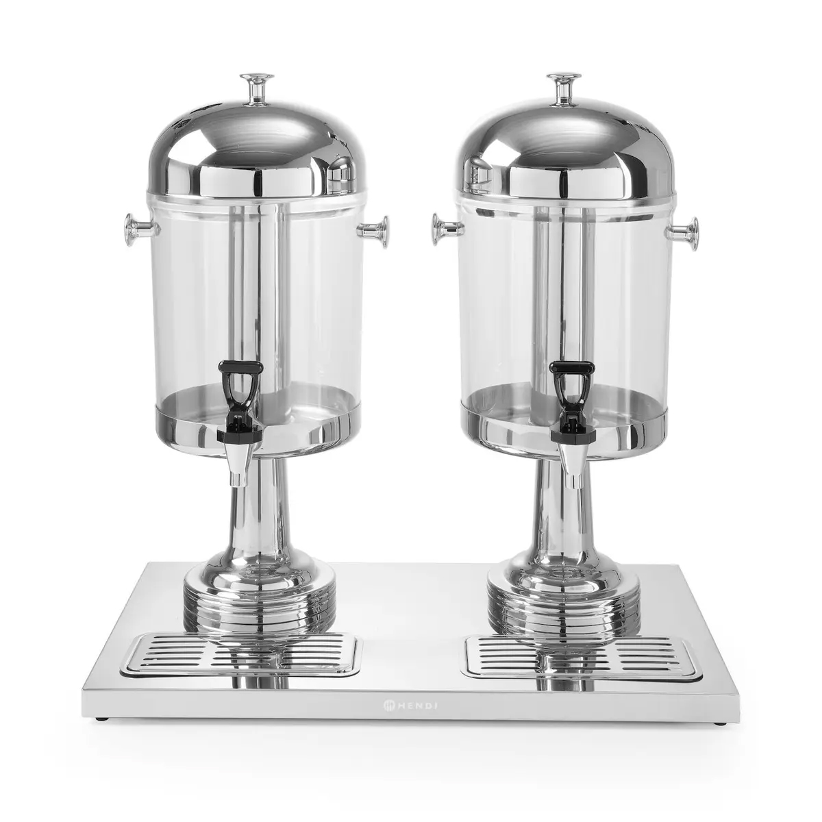 Dozatorul de băuturi – suc 2 x 8 L | Hendi 425411 este soluția practică pentru servirea sucurilor, limonadelor și a altor băuturi reci în restaurante, bufete, hoteluri și alte locații HoReCa. Designul elegant din policarbonat și oțel inoxidabil oferă un aspect profesional, fiind totodată rezistent și durabil.