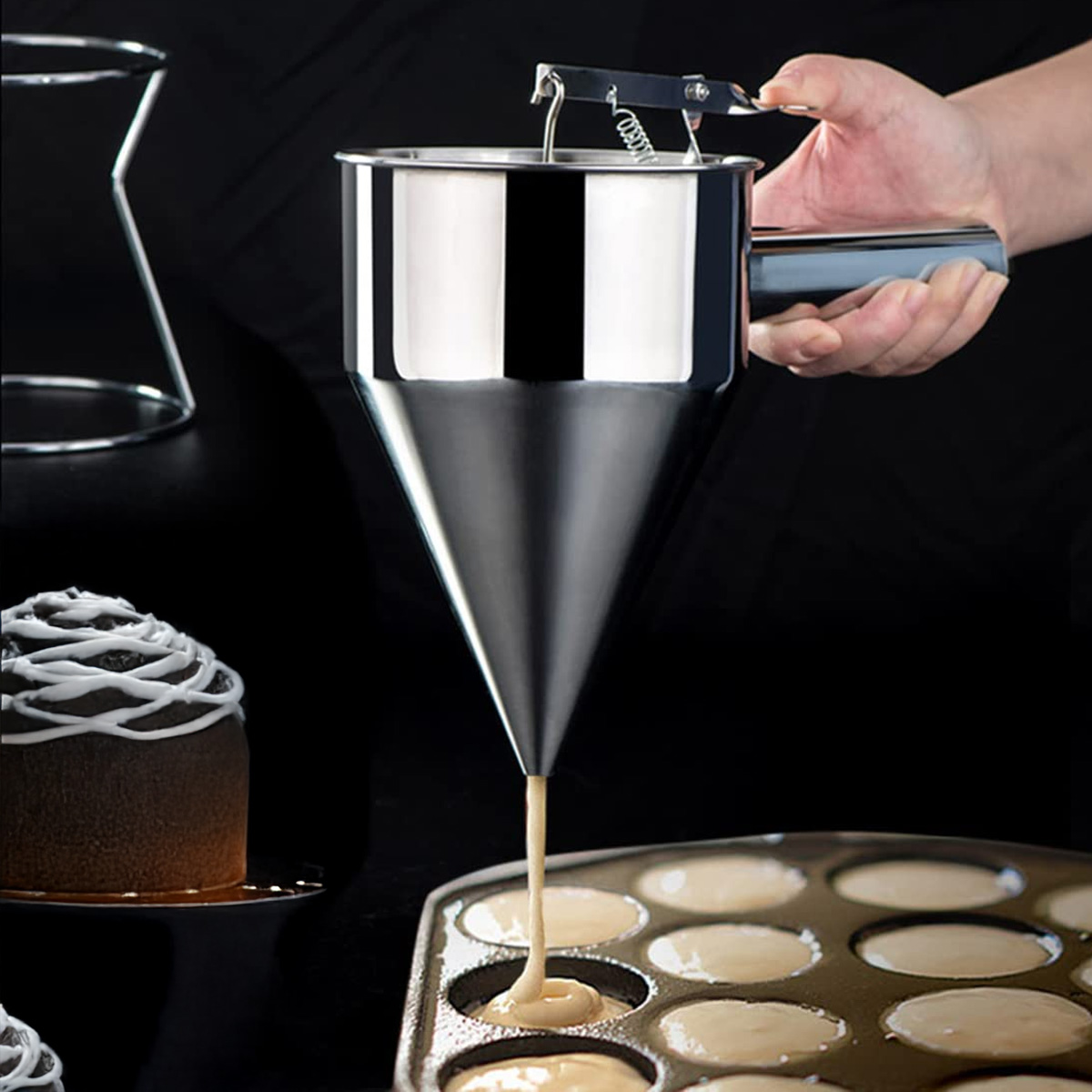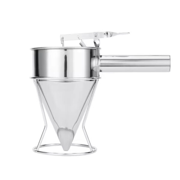Dozatorul profesional pentru patiserie cu o capacitate de 600 ml este ajutorul perfect pentru cofetari, bucătari sau pasionați de gătit acasă. Permite dozarea precisă și comodă a aluatului, glazurii, sosurilor sau cremelor, fără risipă sau murdărie. Este echipat cu un mecanism practic cu arc, care asigură controlul exact al fluxului prin simpla apăsare a mânerului. Pachetul include și un suport stabil, pentru depozitare ușoară și sigură în timpul utilizării. Datorită formei ergonomice și construcției din inox de calitate, dozatorul este potrivit pentru utilizare zilnică, inclusiv în bucătării profesionale.
