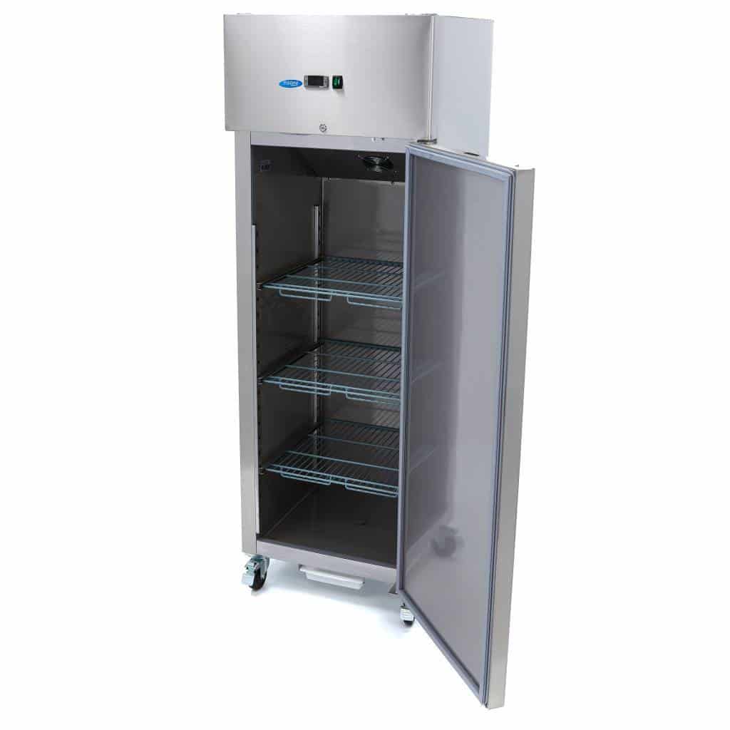 Pentru a păstra alimentele proaspete și reci, bucătăriile profesionale HoReCa au nevoie de un frigider de calitate. Acest frigider profesional dispune de ușă cu închidere automată și garnitură antibacteriană din cauciuc.