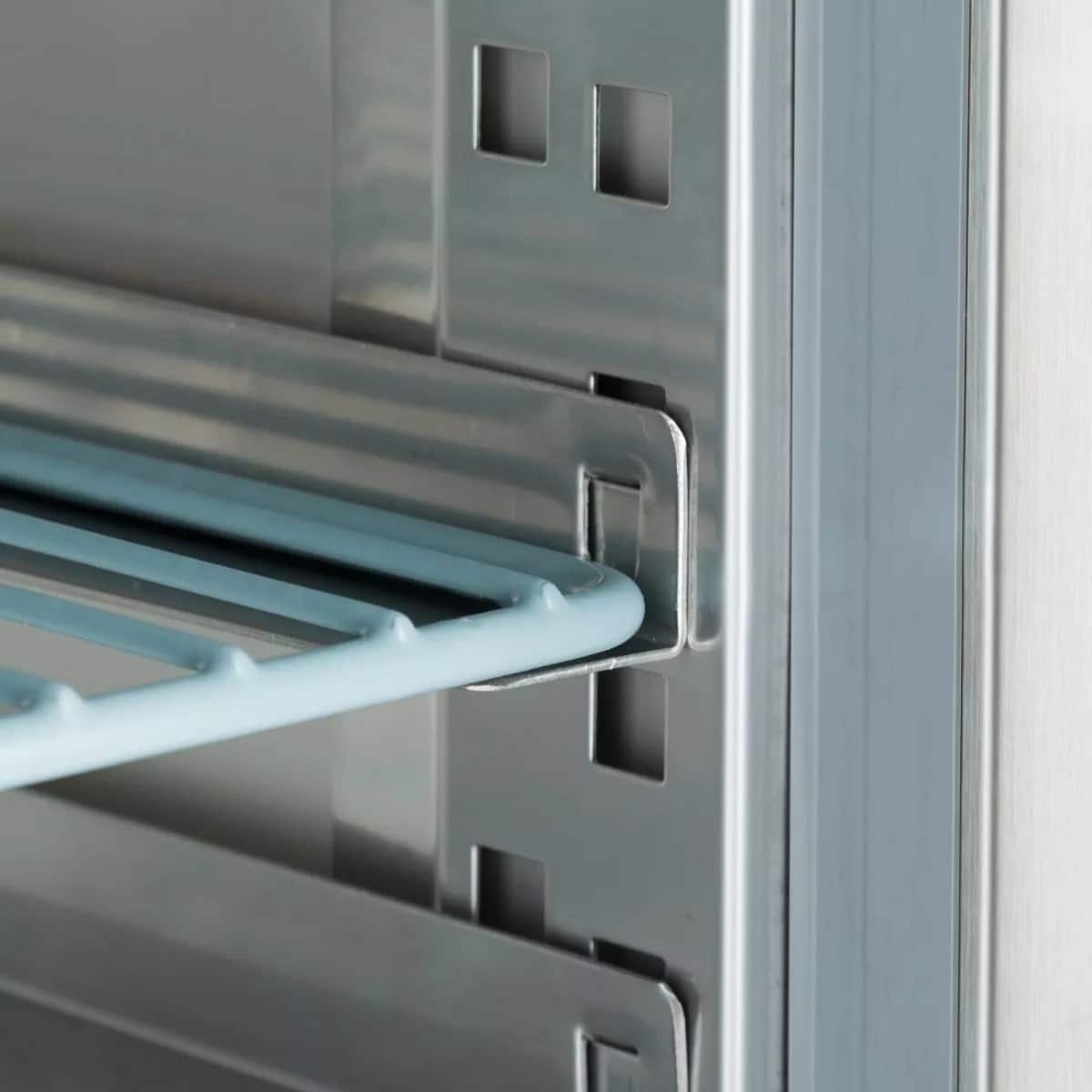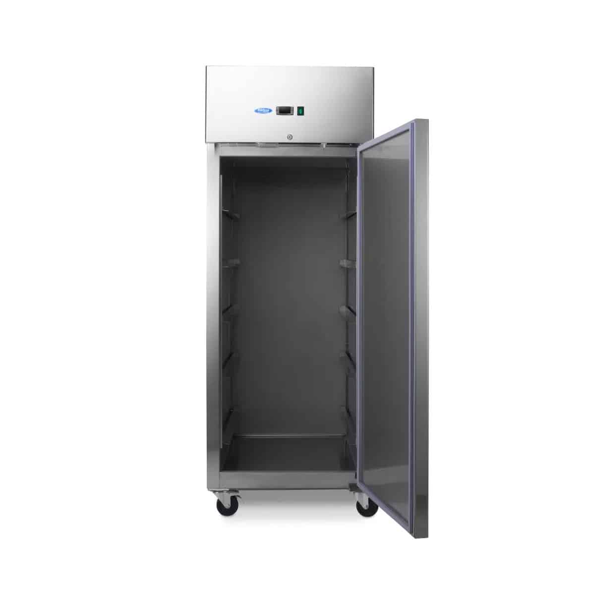 Acest frigider profesional este ideal pentru utilizare în brutării. Cu un volum de 800 litri, puteți păstra la rece o cantitate mare de produse. Ușa este cu închidere automată și are garnitură antibacteriană. În acest frigider puteți monta până la 10 rafturi reglabile pe înălțime. Are 10 ghidaje pentru tăvi de 60 x 80 cm, care pot fi comandate separat. În plus, frigiderul este prevăzut cu încuietoare și două chei.