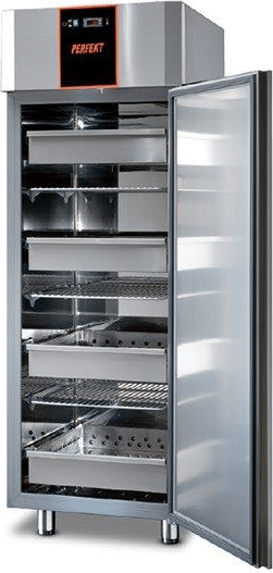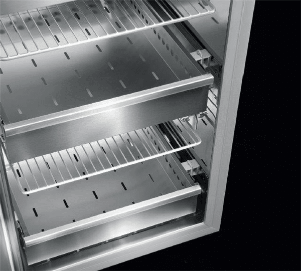 Dulapul frigorific din inox NORDline TN 700 este ideal pentru depozitarea fructelor, legumelor, aluatului de panificație, produselor lactate, mezelurilor și peștelui. Față de modelul anterior TN 700, are un sistem de deschidere a ușii mai simplu. Oprirea ventilatorului este disponibilă deja în varianta standard. Pentru o organizare mai eficientă a alimentelor, este disponibil un sistem modular de sertare cu ghidaje. Interiorul este proiectat pentru a facilita curățarea (toate componentele sunt ușor de scos și accesibile). Exteriorul și interiorul sunt realizate din oțel inoxidabil AISI 304. În plus, spațiul interior a fost conceput pentru a permite o curățare cât mai ușoară. Spațiul interior este adaptat pentru tăvi GN 2/1. Sertarul congelator vă ajută să economisiți bani datorită izolației de 60 mm și ușii cu închidere automată.
