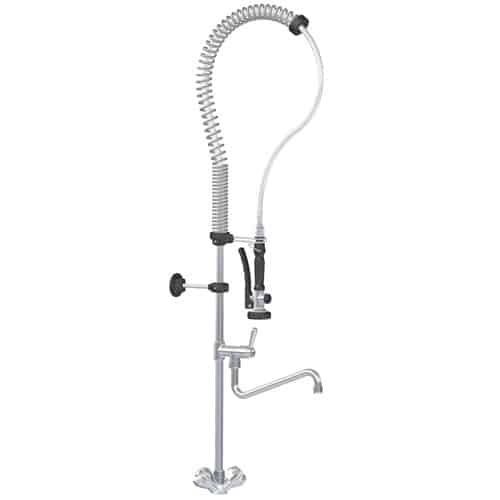 Dușul profesional cu braț pentru mașina de spălat vase | DOC-3 este echipat cu furtun flexibil din inox, arc de echilibrare, baterie pentru chiuvetă și supape de sens.