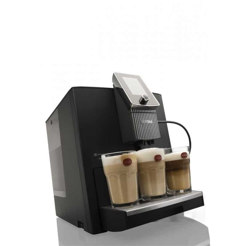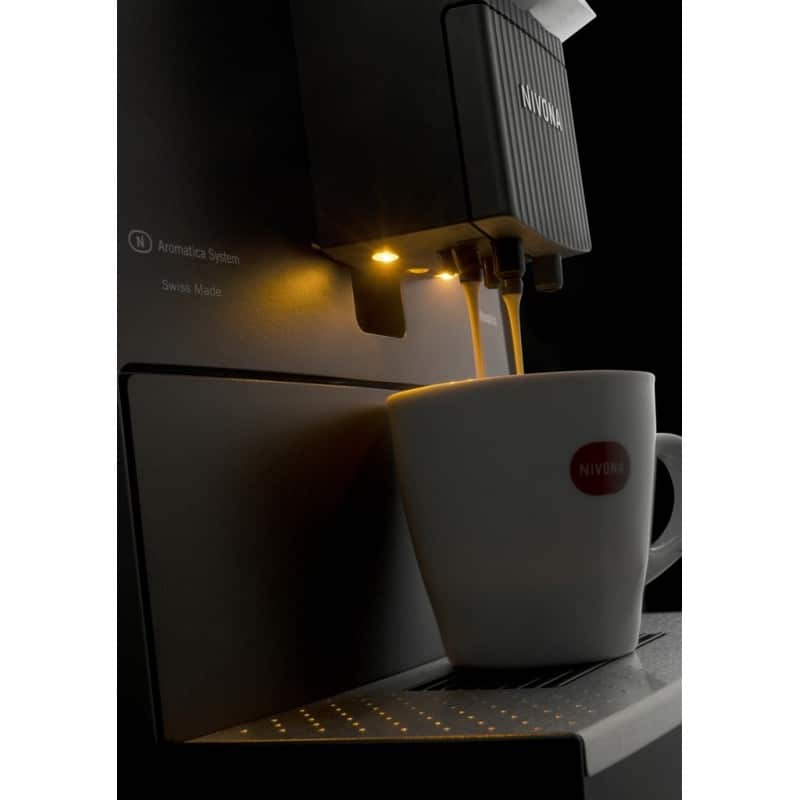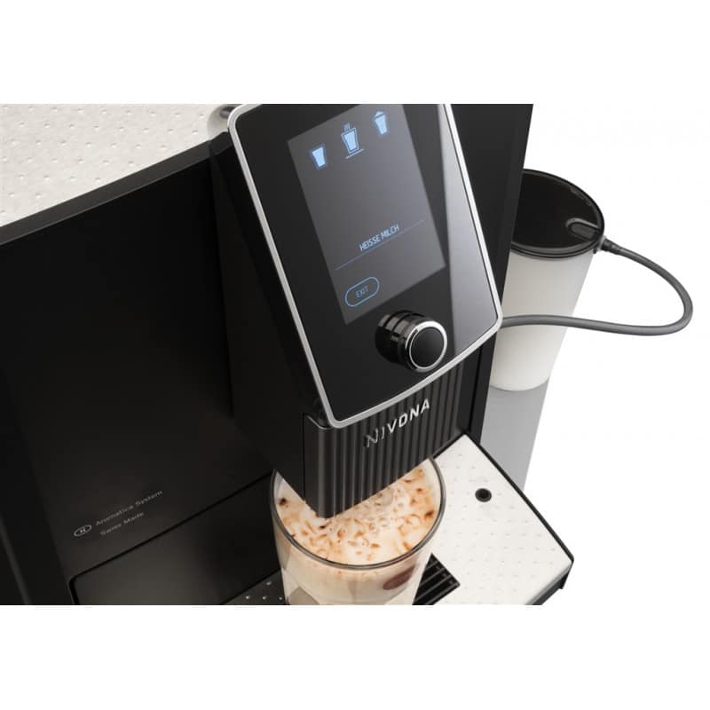 Espressorul NIVONA 1030 este destinat iubitorilor de espresso clasic, dar și de băuturi cu lapte, pe care le prepară ușor, printr-o singură atingere (one touch). Prepararea băuturilor precum cappuccino sau latte este asigurată de sistemul automat de spumare a laptelui, care poate produce atât abur, cât și apă fierbinte. Duza este integrată direct în capul de cafea, astfel încât nu mai este nevoie să mutați paharul sau ceașca. Doar introduceți furtunul de lapte în recipient și selectați băutura dorită. NIVONA 1030 are dublu cappuccinator – puteți prepara 2 latte sau 2 cappuccino simultan!