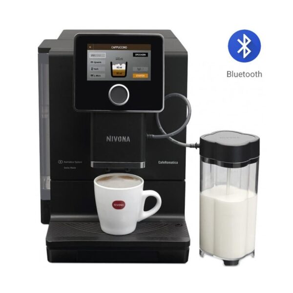 Cu espressorul inteligent Nivona NICR 960 CafeRomatica, poți crea acasă sau la birou o adevărată cafenea cu experiență de barista profesionist. Espressorul premium prepară printr-o singură atingere unul dintre cele 17 băuturi exact după preferințele tale. NIVONA NICR 960 este un aparat confortabil, echipat cu o râșniță extra silențioasă, setare Barista pentru noile sortimente de cafea NIVONA datorită sistemului Aroma Pre-Select, funcție OneTouch Spumatore Duo pentru prepararea simultană a două cești de cappuccino, precum și posibilitatea de a personaliza până la 9 băuturi în modul MY COFFEE cu programare live a tuturor rețetelor. Toate funcțiile se controlează și setează ușor pe ecranul tactil mare, ce oferă o nouă experiență de utilizare pentru un plus de confort. Control prin Bluetooth și iluminarea rezervorului de apă în 8 culori diferite sunt doar câteva dintre facilitățile suplimentare.