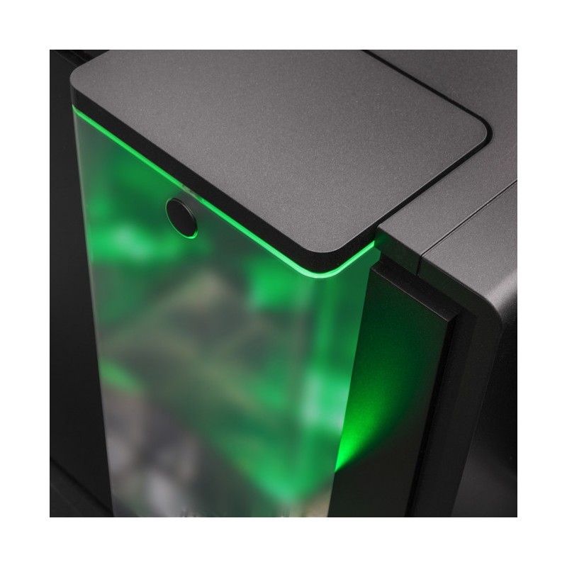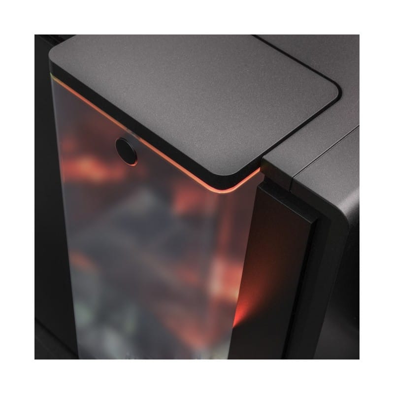 Espressorul automat dispune de râșniță super silențioasă, setare a intensității cafelei în 5 trepte, temperatură ajustabilă pe 4 niveluri, grad de măcinare în 5 trepte, înălțimea duzei reglabilă până la 14 cm. Poți prepara 2 cești simultan. Designul titan este completat de iluminarea rezervorului de apă în 8 culori diferite și de 2 lumini pentru pahare, pentru un aspect estetic deosebit.