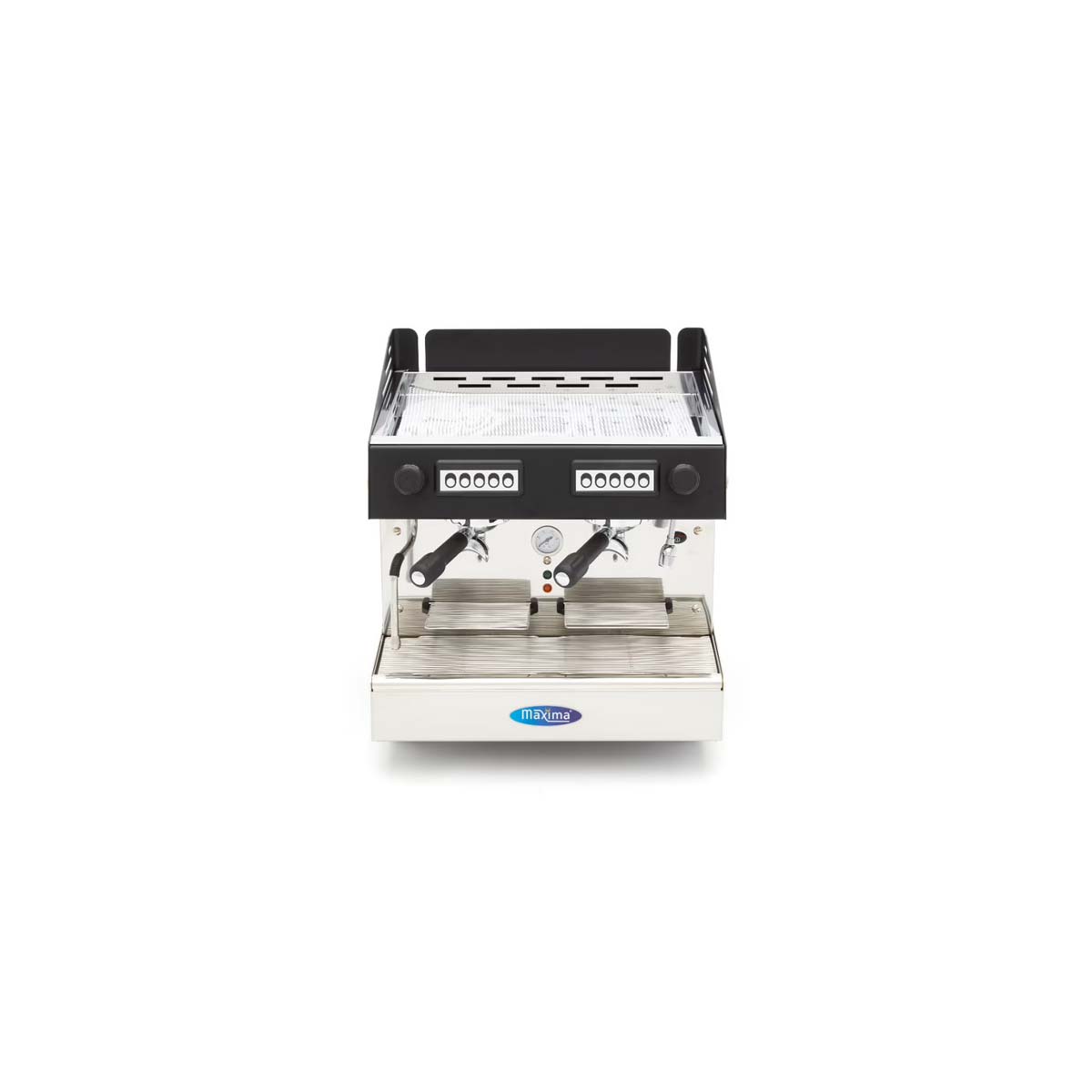 Espressorul profesional cu două grupuri, compact | Maxima 09100001 este un aparat de calitate superioară, ideal pentru utilizarea în bucătării mai mici. Espressorul dispune de un boiler cu capacitate de 6,5 l, suficient pentru a prepara până la 360 de cești de espresso pe oră. Controlul aparatului este foarte simplu datorită panoului cu butoane tactile intuitive.