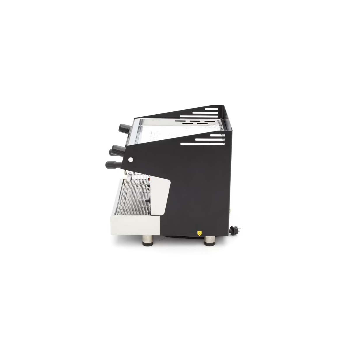 Espressorul profesional cu două grupuri, compact | Maxima 09100001 este un plus pentru orice locație HoReCa. Oferă o gamă largă de funcții și este extrem de fiabil. Carcasa metalică elegantă cu finisaj negru îi conferă un aspect luxos și modern. Boilerul de 6,5 litri permite prepararea a până la 360 de cești pe oră. Este echipat cu două grupuri cu cameră de preinfuzie directă. Pentru fiecare grup există patru opțiuni de dozare: espresso, cafea mare, dublu espresso și două cafele mari, astfel încât să puteți alege prepararea potrivită pentru clientul dumneavoastră. Tava de scurgere este realizată din inox, iar grătarul de scurgere este cromat și spațios.