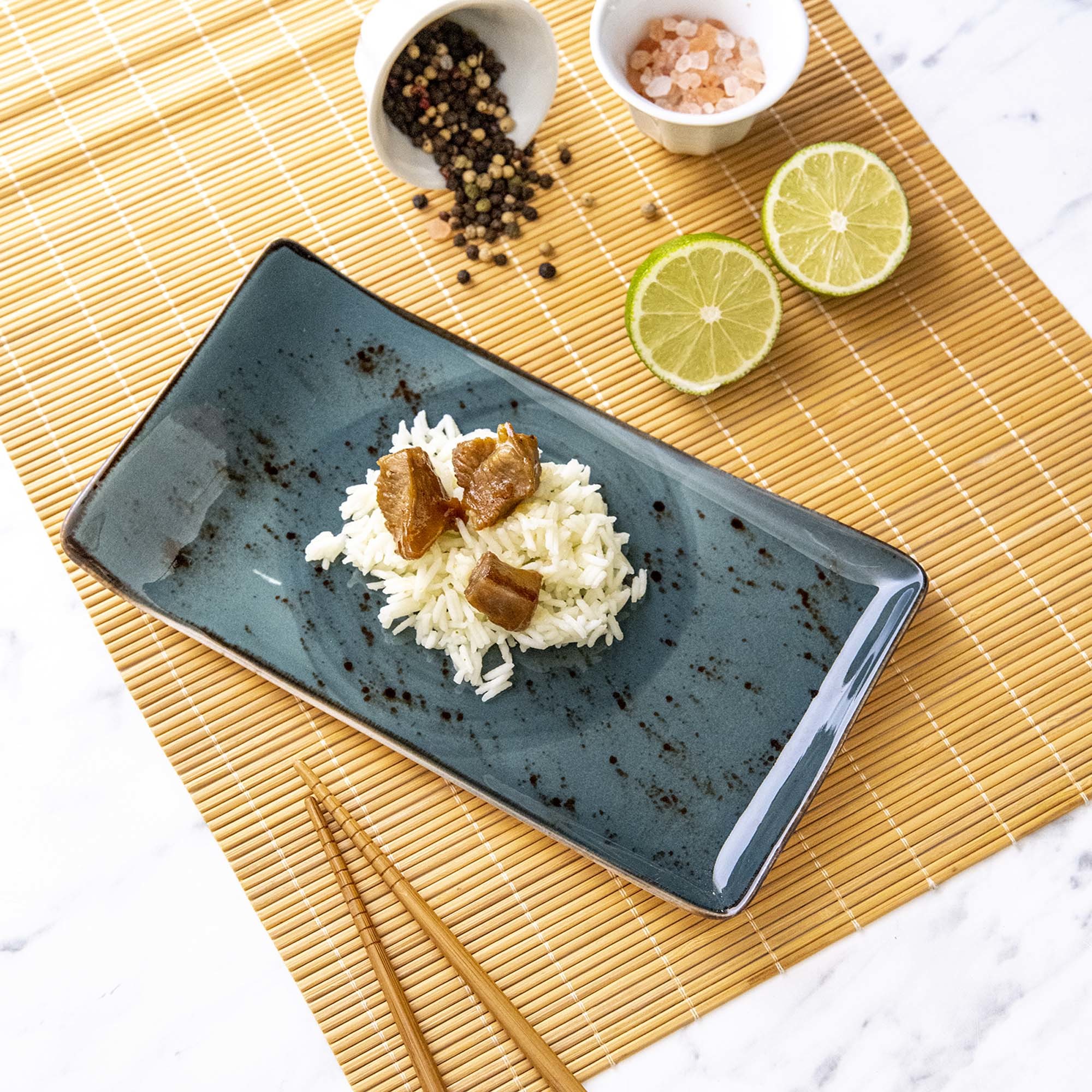 Colecție bogată de porțelan decorat manual, disponibilă în patru culori vibrante. Combinați elemente portocalii, albastre, bleumarin și gri pentru un aspect unic și surprinzător al mesei, iar preparatele vor arăta la fel de bine pe cât sunt de gustoase. Vesela este rezistentă și durabilă, concepută special pentru a face față utilizării intense în bucătăriile profesionale.